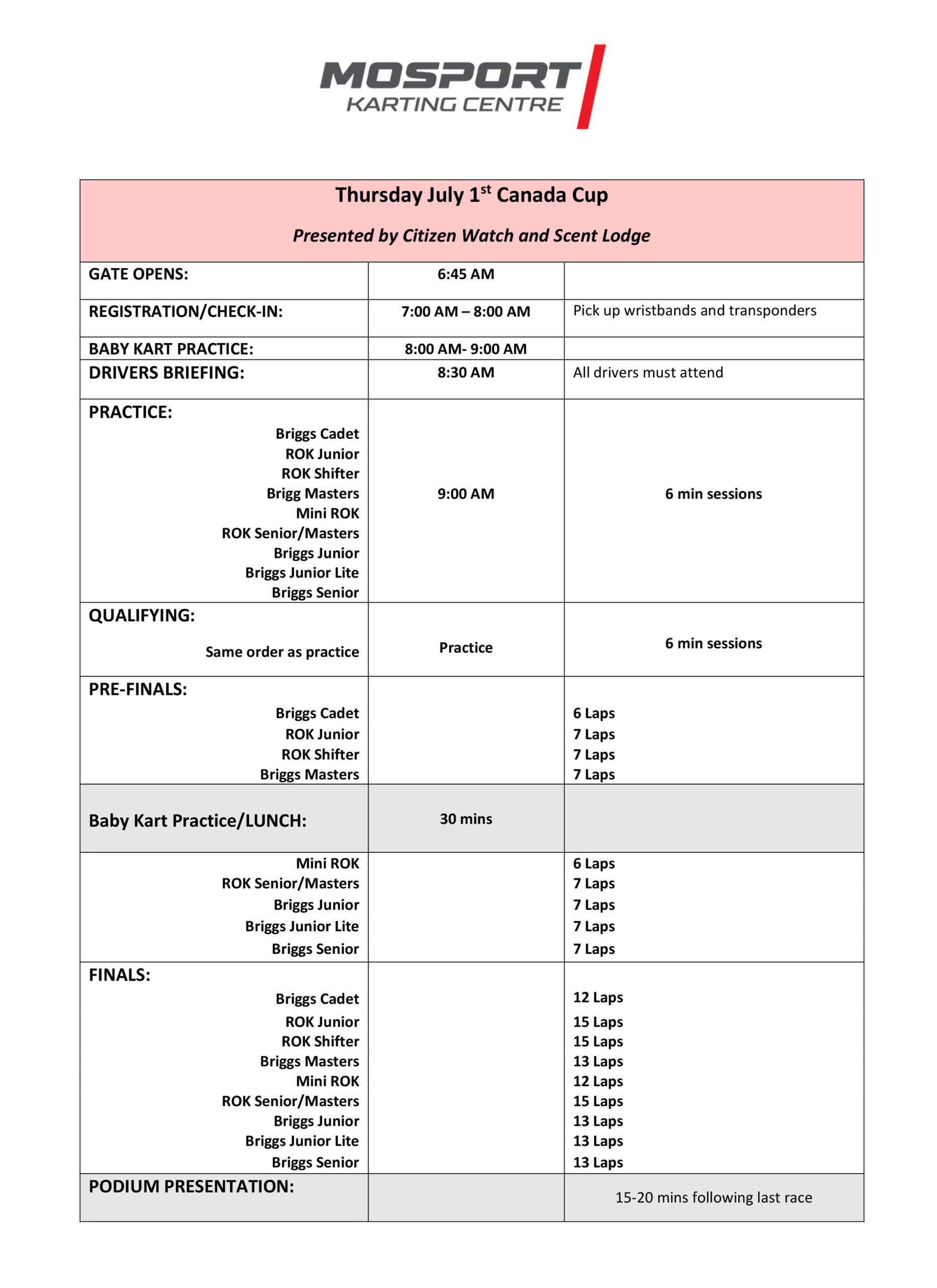 Champions will be awarded a Citizen watch, Ferrari backpack, toiletry bag, and a Versace cologne pack courtesy of Scent Lodge. Adding to the already strong prize package for the event, Prime Powerteam and Canadian Mini indy have come on board with $500 cash & a Citizen Watch to be awarded to 1 Junior and 1 Senior “driver of the day”.