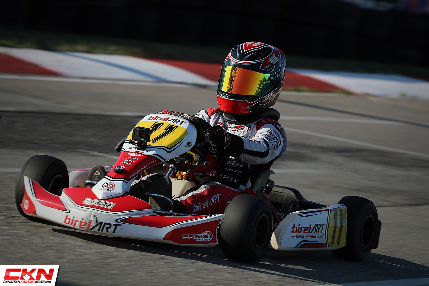 A great race-long battle for the lead ended with the two leaders in the grass and a surprise race winner as Joey Lecce (BirelART) scored the CKN Dash for Cash race win in Briggs Cadet at the Canadian Mini Indy.