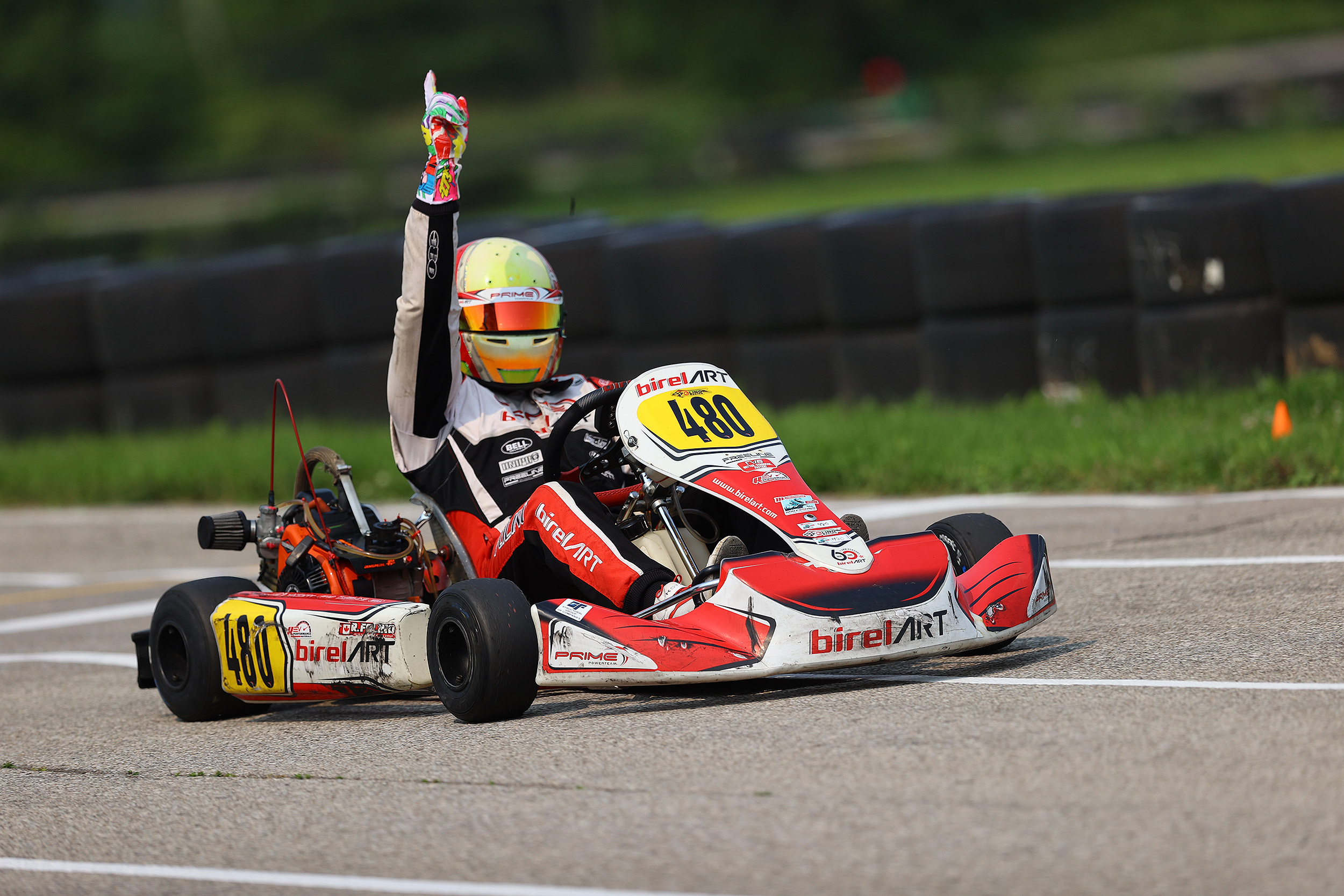 While Folino did all he could to close back onto the bumper of Stehle, he just didn’t have enough and Stehle scored the race win. A pushback bumper penalty for Folino didn’t affect his second-place finish as his cushion to third place Levon Beaudin (BirelART) was more than five seconds. Ian Macintyre (CL Kart) was fifth.