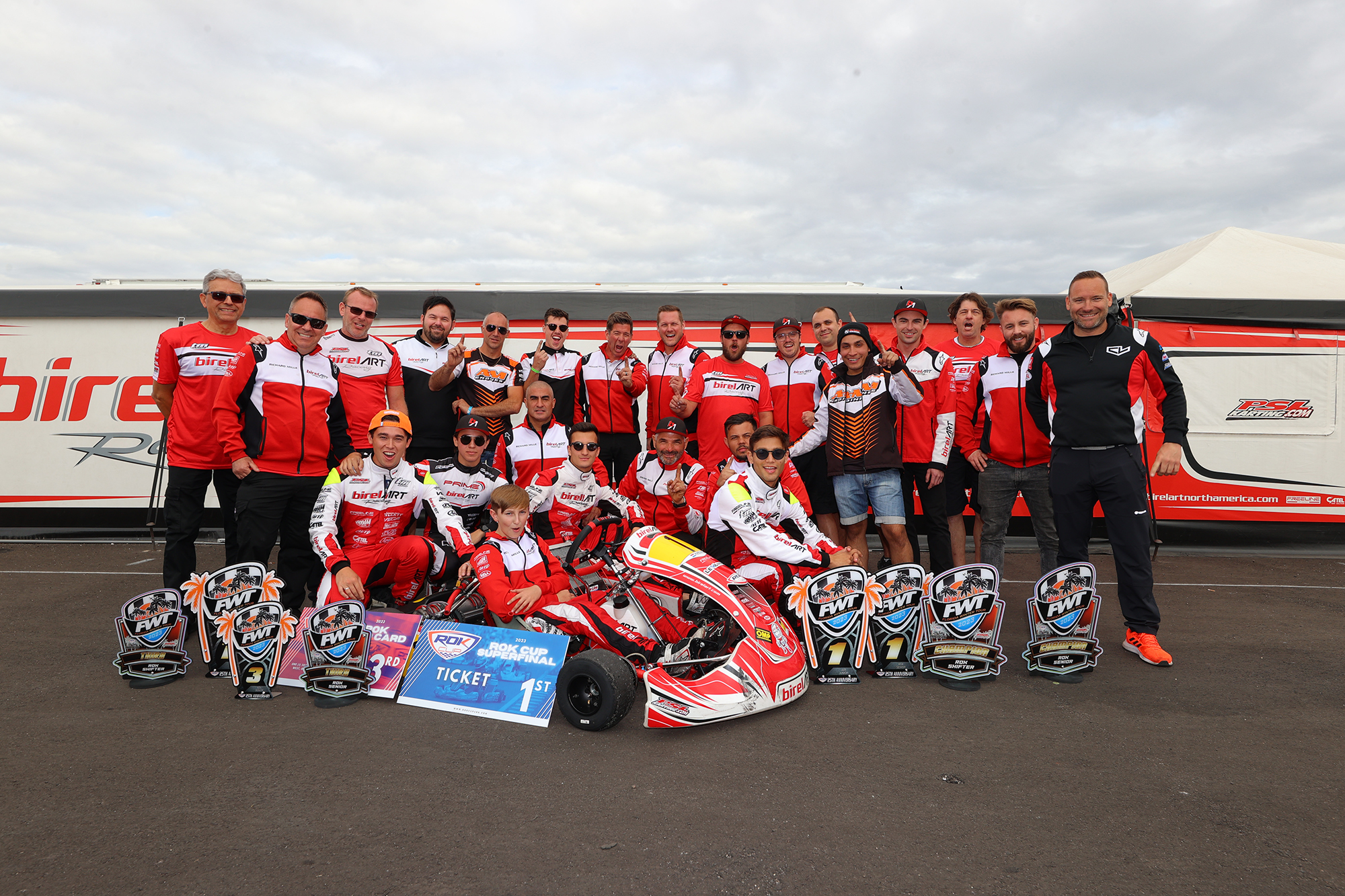 After qualifying in the pole position, Matheus Morgatto led a quartet of ROK Senior drivers earning top-ten results on Sunday. With Morgatto taking the win and championship, Alessandro De Tullio celebrated with Morgatto on the podium with a P3 result while Frankie Esposito put three BirelART drivers in the top-five with a fifth-place result. Nolan Bower was the fourth BirelART North America driver to finish in the top-ten crossing the line ninth while Nolan Hofrichter and Diego Ramos finished 11th and 13th respectively.