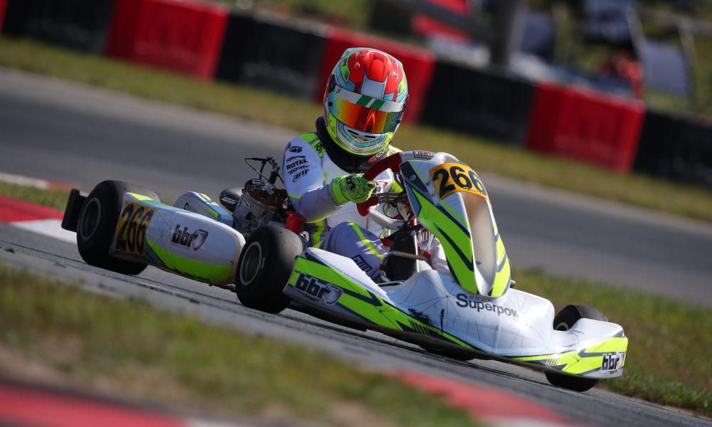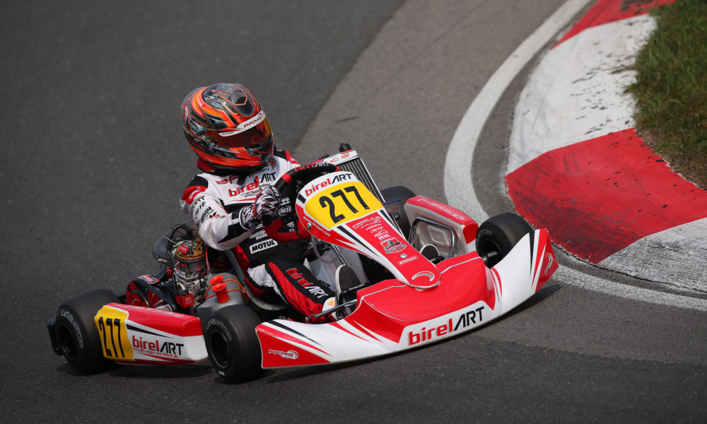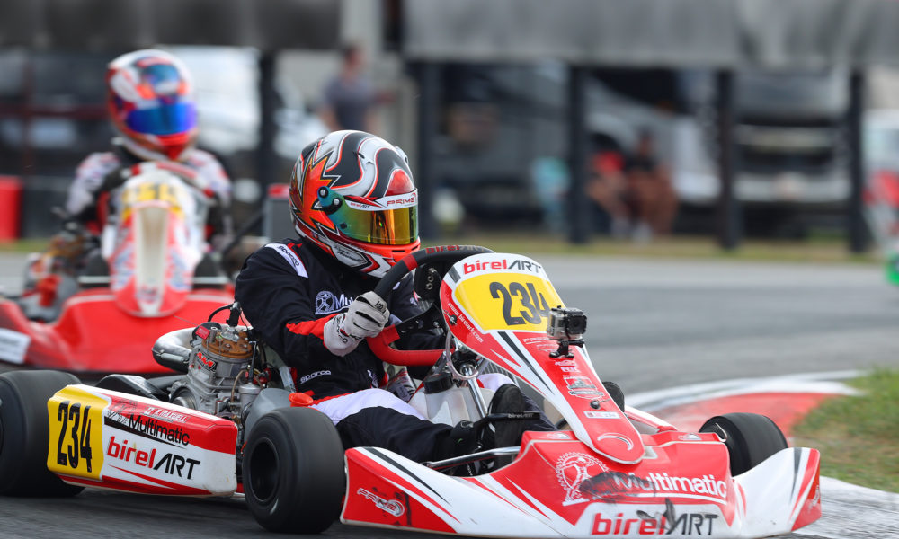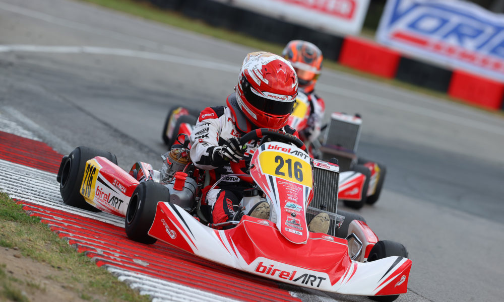 Logan Pacza (Prime/BirelART) was the early race leader ahead of Friday’s fast-qualifier Frankie Esposito (Prime/BirelART) while Ryan Maxwell (Prime/BirelART), Marcello Paniccia (PRO/CL Kart) and Joseph Launi (Powerhouse/Exprit) were mixing it up for third.
