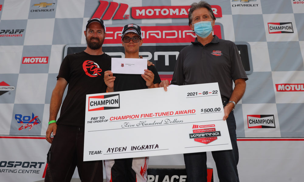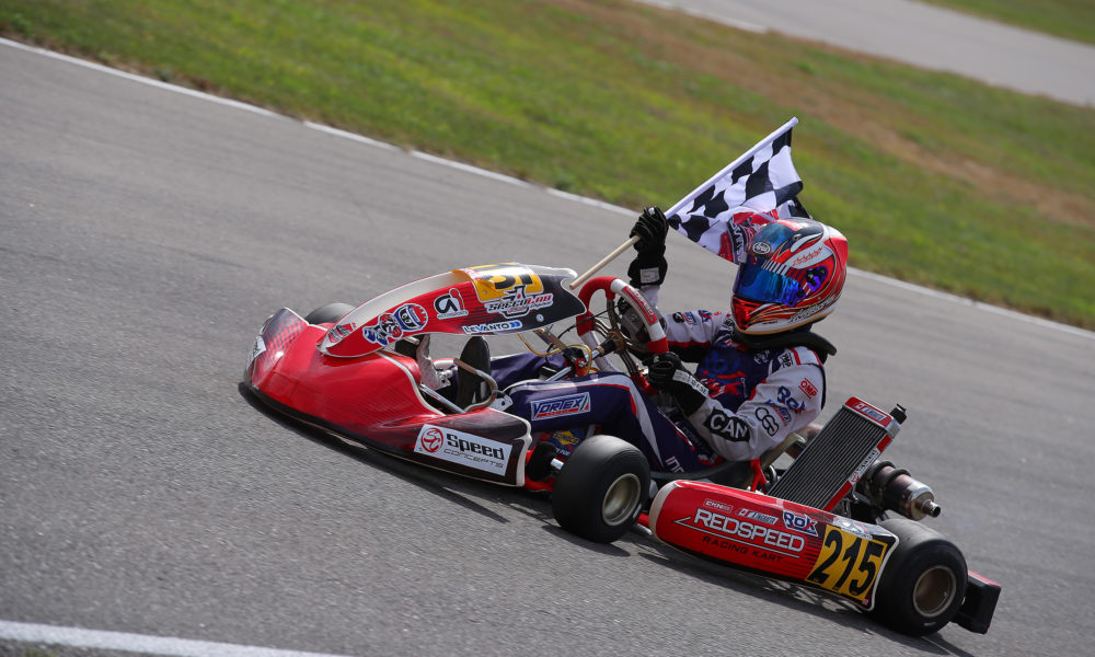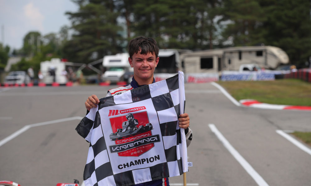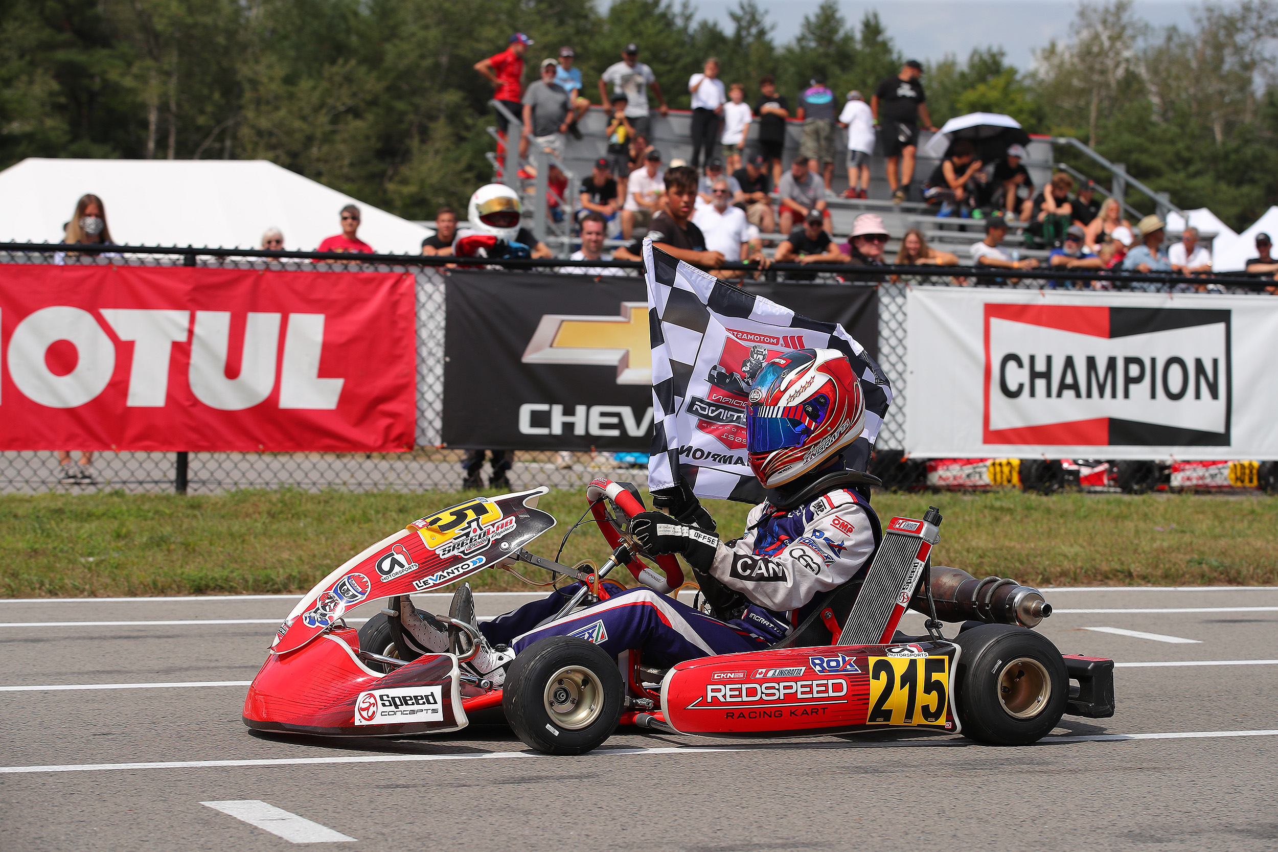 Ayden Ingratta secured his second Canadian Karting Championship of the day at the Mosport Karting Centre with an impressive drive in the Rok Junior Final where he started from the rear of the field and made his way to the front.