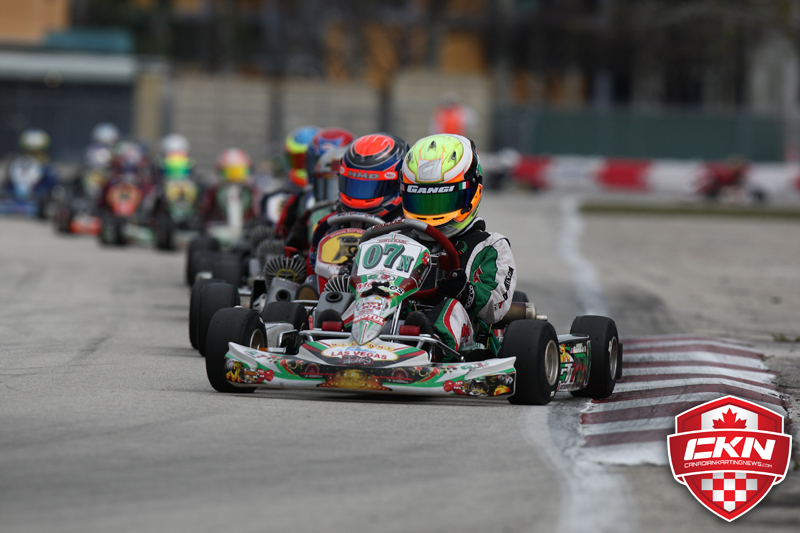Anthony Gangi Jr. led into the first corner ahead of Bromante, followed by the MRP Motorsport pairing of Malukas and Brueckner. On lap three Brueckner would make of move on Malukas for third with d’Orlando following him through, sending Malukas back to fifth. After losing his momentum Malukas then lost fifth to Dylan Tavella (Tony Kart). After d’Orlando finished third in the Saturday final he continued to show strong form as he passed Brueckner for third in the final corner with five laps to go. At the line it was Gangi taking another heat win of the weekend ahead of Bromante, d’Orlando, Tavella and Brueckner who got passed by Tavella on the final lap.