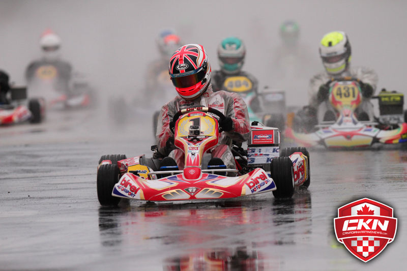 The 2013 Florida Winter Tour Rotax Max Challenge saw it’s first race day finally hit the track today at Palm Beach International Raceway. With a mixture of weather in the forecast, drivers and mechanics were kept on their toes, doing their best to ensure they had the correct setup for the tricky conditions. The morning warm ups, Last Chance races and first few pre finals were all on a dry track, but just as the Rotax Junior division hit the track, the skies opened up and the rain came pouring down.