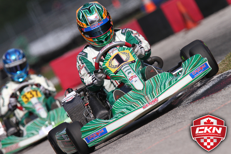 Askew was able to break away early with Ocala Gran Prix teammate Sam Beasley (TonyKart), but the two were tracked down by Sam Schippers (OK1) and Luke Varley (Birel), and eventually Saturday winner Charlie Eastwood (TonyKart) also joined the lead pack. A move by Varley to third, allowed the hard charging Eastwood to pass both of them. But Eastwood would slow in the closing stages of the pre final, allowing both Schippers and Varley back by, and then lost one more spot on the final lap to Daniel Formal (TonyKart). But up front, Askew took the win and pole position for the Final. Schippers moved into second, moving Beasley to third, while Varley, Formal and Eastwood rounded the top six.