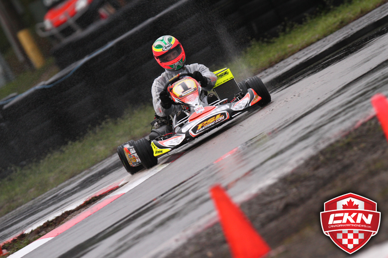 The 2013 Florida Winter Tour Rotax Max Challenge saw it’s first race day finally hit the track today at Palm Beach International Raceway. With a mixture of weather in the forecast, drivers and mechanics were kept on their toes, doing their best to ensure they had the correct setup for the tricky conditions. The morning warm ups, Last Chance races and first few pre finals were all on a dry track, but just as the Rotax Junior division hit the track, the skies opened up and the rain came pouring down.