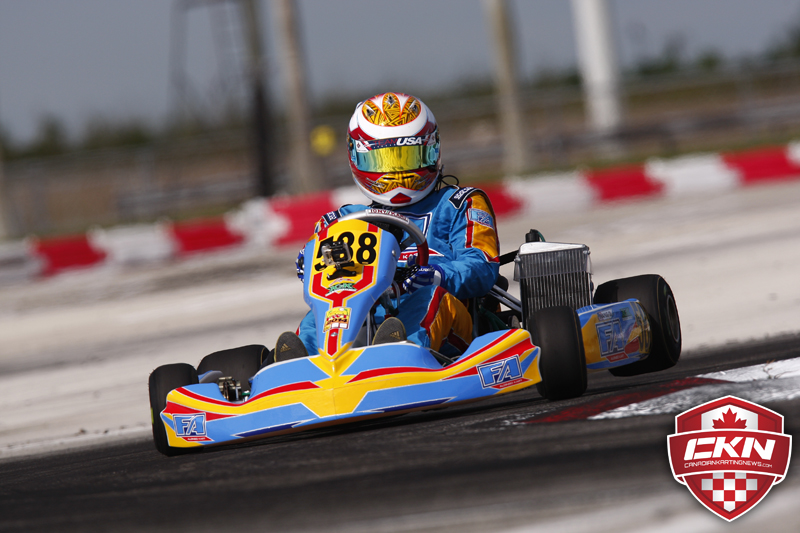 American Derek Wang (KGK/FA Kart) was the fastest in Qualifying for Saturday’s race and will start from the pole with Luis Schiavo (Goodwood/Intrepid) of Venezuela beside him. Another Venezualan, Erico Friso (CRG) was third quickest ahead of Joaquin Caicedo (Birel) of Columbia and Carlos Medina of Mexico (CRG).