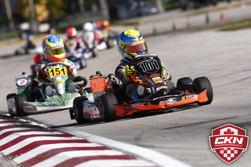 Nicholas d’Orlando (KoeneUSA/TonyKart) ended up sixth with Matthew Latifi (Ferrolati Corse/TonyKart) driving from 32nd on the grid all the way to twelfth at the line. Both drivers are competing in Mini-Max for the first time. Finally Matthew Barry (Praga) had a tough run, ending up 33rd.