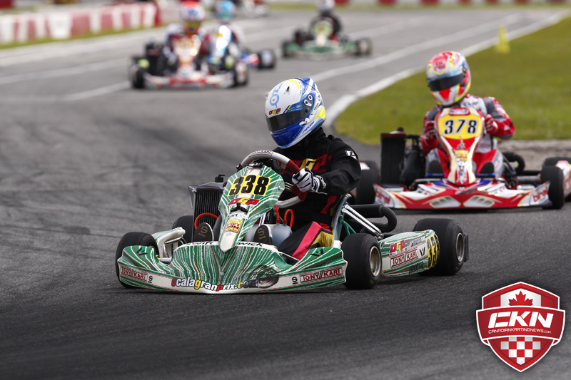 Zachary Scalzo (KGK/TonyKart) led the Canadian contingent with a seventh place result. Garett Britton (KMS/Birel) fourteenth. Saturday winner Zachary Claman DeMelo (Goodwood/Intrepid) was involved in a big first corner incident that also claimed Johnny Flute (Mosport/Kosmic) and Christophe Paquet (PSL/CRG).
