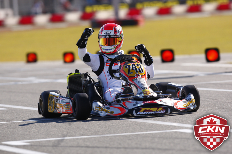 Garrison eventually went by for the lead and in doing so allowed Brito and Luis Forteza (J3 Competition/Kosmic) to make it a four kart race for the lead. Racing on the defensive, Garrison surrendered the lead back to Cardoso with two laps remaining as the Brazillian made a great move in corner five. Not letting anything happen like in Homestead, Cardoso made no mistakes in the remaining laps to the checkered and scored his the win, to add to his overall points championship total. Garrison was second and Brito third.