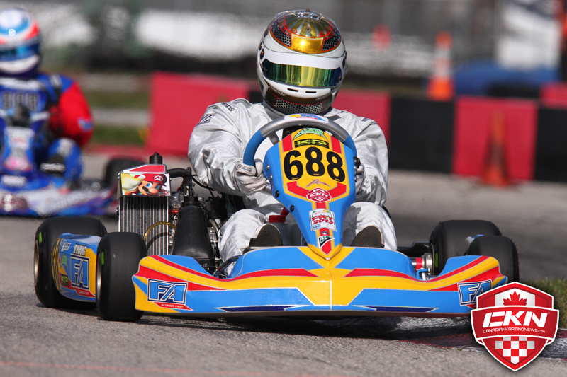 After winning the close Pre final race Wang was able to take a flag to flag victory in the Final with a smooth and consistent drive throughout the race. Gallegher was in second in the earlier stages with Franciso Marques (CRG) battling with him, but the two drivers could not hold back the hard charging Brazilian Nienkotter, who set fast lap after fast lap and grabbed second place behind Wang. Marques would eventually get third over Gallegher to claim the final step on the podium. Bobby Greene (Maranello) finished fifth in the Final after qualifying last in Friday’s qualifying session.
