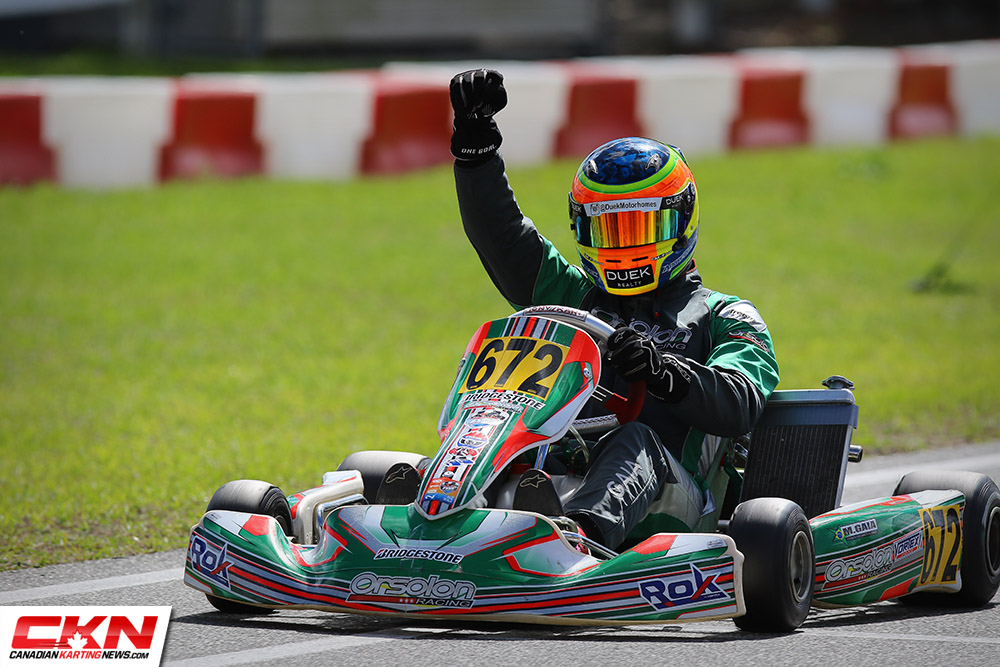 The young guns in Micro Rok were exciting to watch with Caleb Grafrarar (Parolin Kart) and Danny Dyszelski (Energy Kart) continuing their rivalry from round one. Grafrarar was the stud of the weekend though and he was able to pull away in the Final and take his second victory of the year. Dyszelski had to settle for second while Alejandro Umana-Luis (Parolin Kart) rounded out the podium. The Canadian duo of Cooper Simpson and Cole Newton finished ninth and twelfth on their Prime Powerteam BirelART machines.