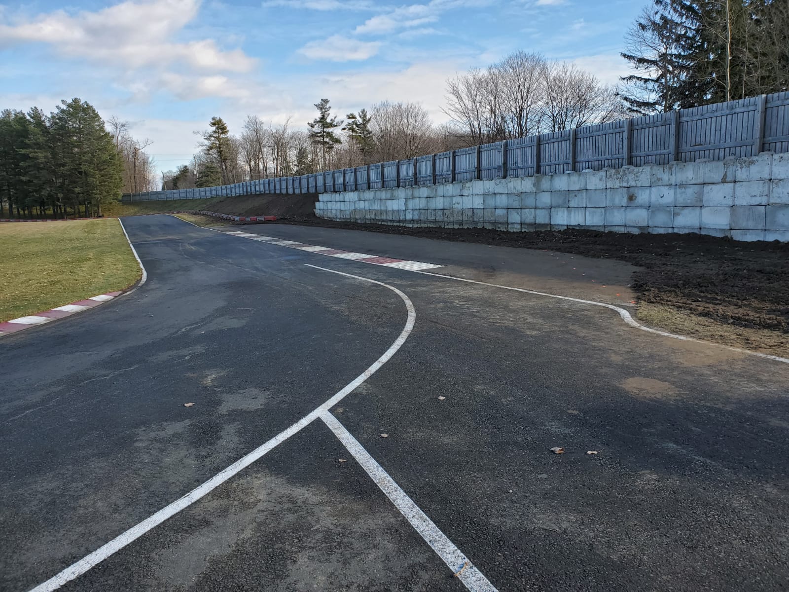 • Project consisted of removing and re-positioning existing retaining wall. The end result more than doubled run-off area from 10 to 22 feet! The re-construct provides the obvious benefit of 12 more feet of additional run-off for drivers as well as allowing for additional options with barrier placement. All major construction is completed, and hydro-seeding and barrier placement will bring a close to our latest renovation project. Here is a link to some progress photos of the project: http://goodwoodkartways.com/?page_id=9898