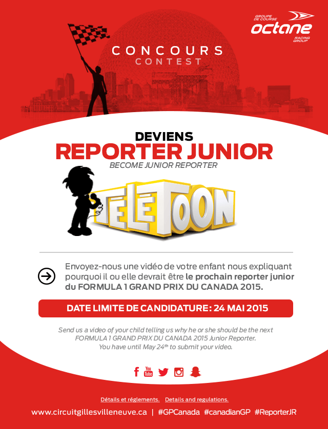 More information and contest rules can be found on http://www.circuitgillesvilleneuve.ca/news/become-junior-reporter.