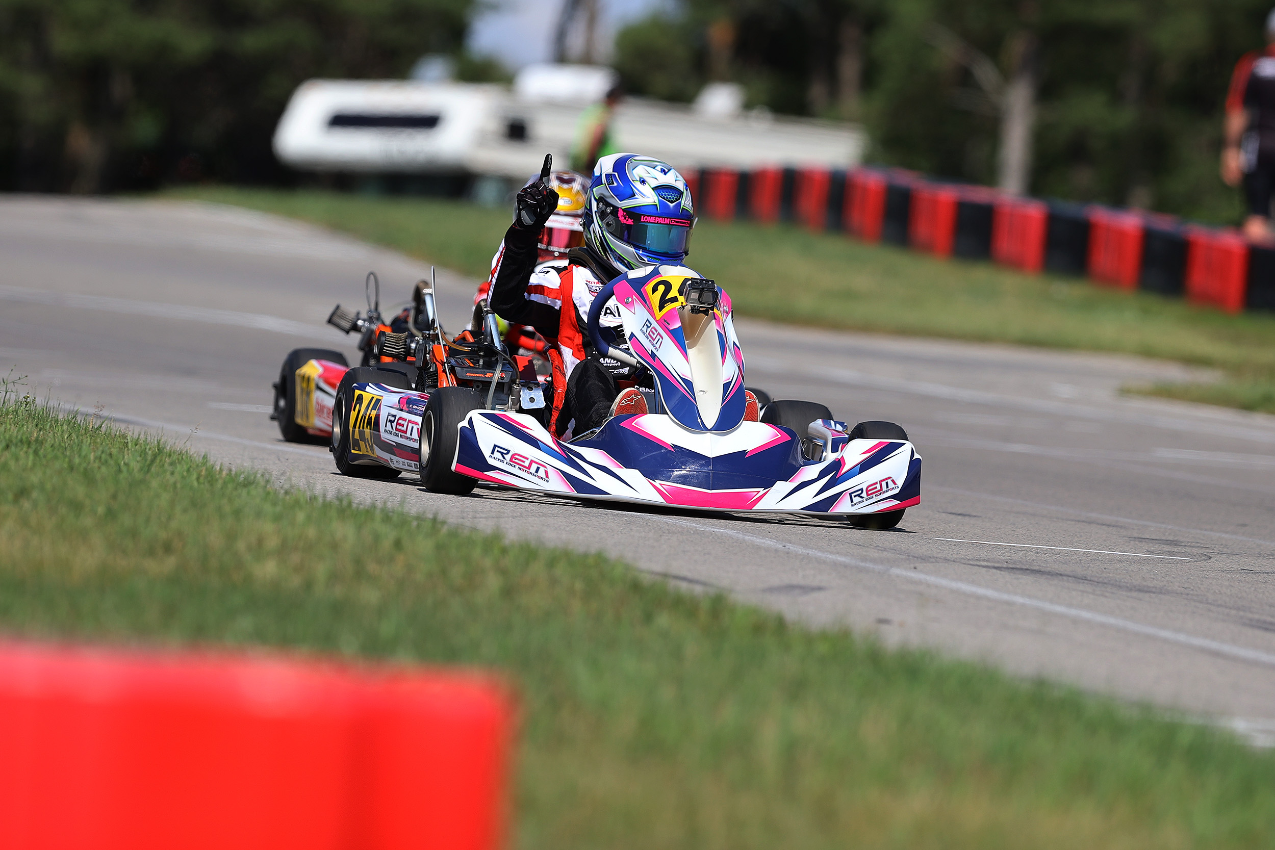 In a head-to-head late-race battle, Callum Baxter (Kosmic) came out on top in the Briggs Junior Final of the MIKA Canada Day Cup, holding off Jordan West (BirelART).