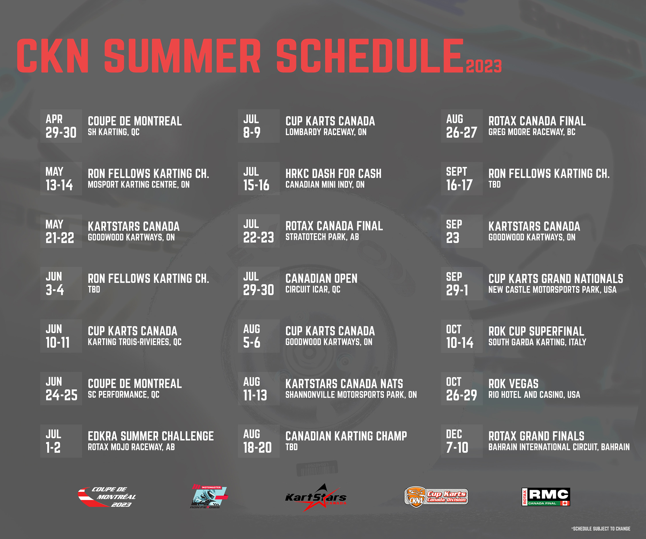 - 09/23 – KartStars Canada Night Race, Goodwood Kartways, ON