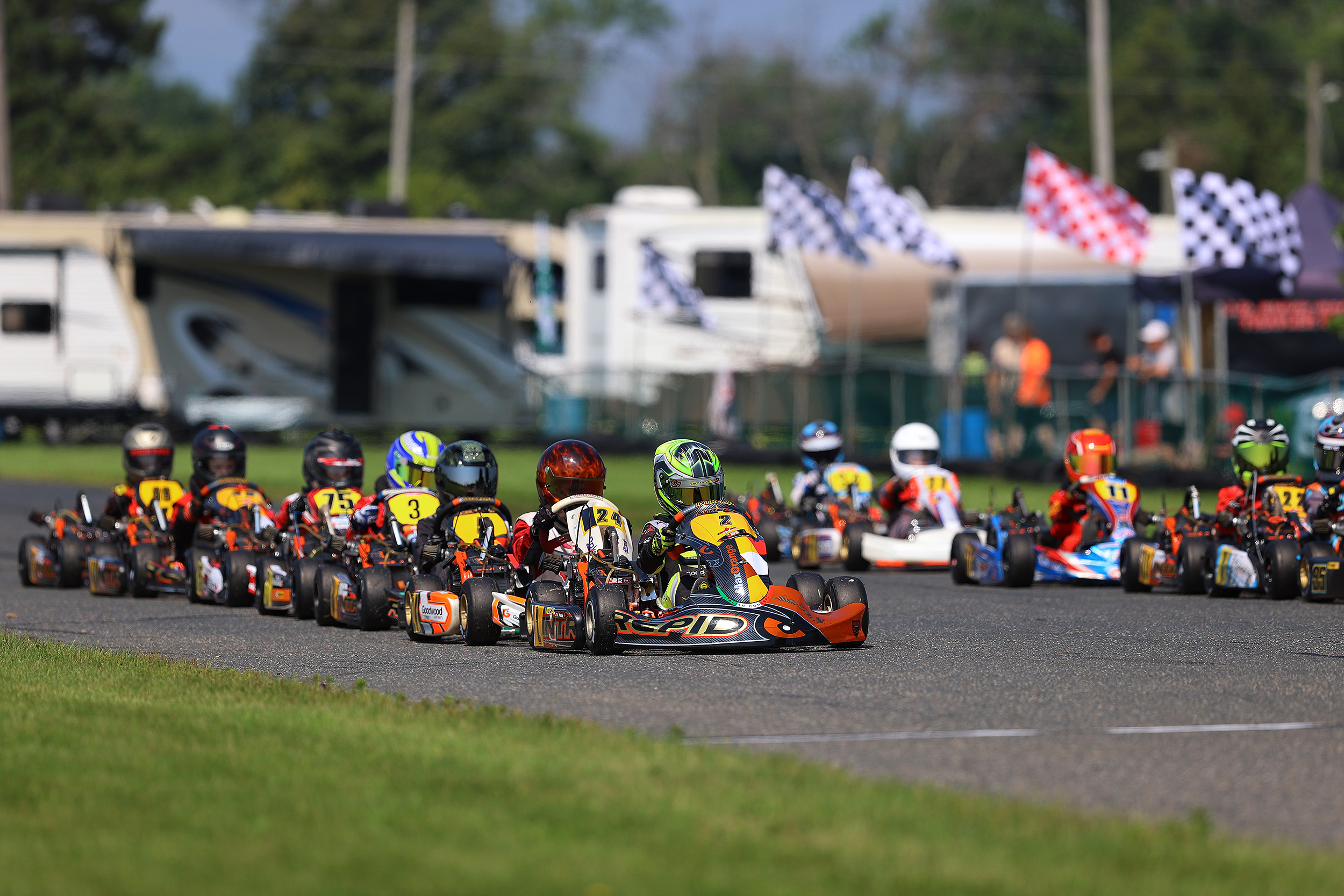 Decklan Deonarine (TonyKart) and Justin DiLucia (Exprit) went back and forth for the second position all race long. On the final lap, Deonarine chose the better route around a lap kart to gain an advantage and sneak through to finish second, with Di Lucia an impressive third overall and topping the Mini Briggs competitors.