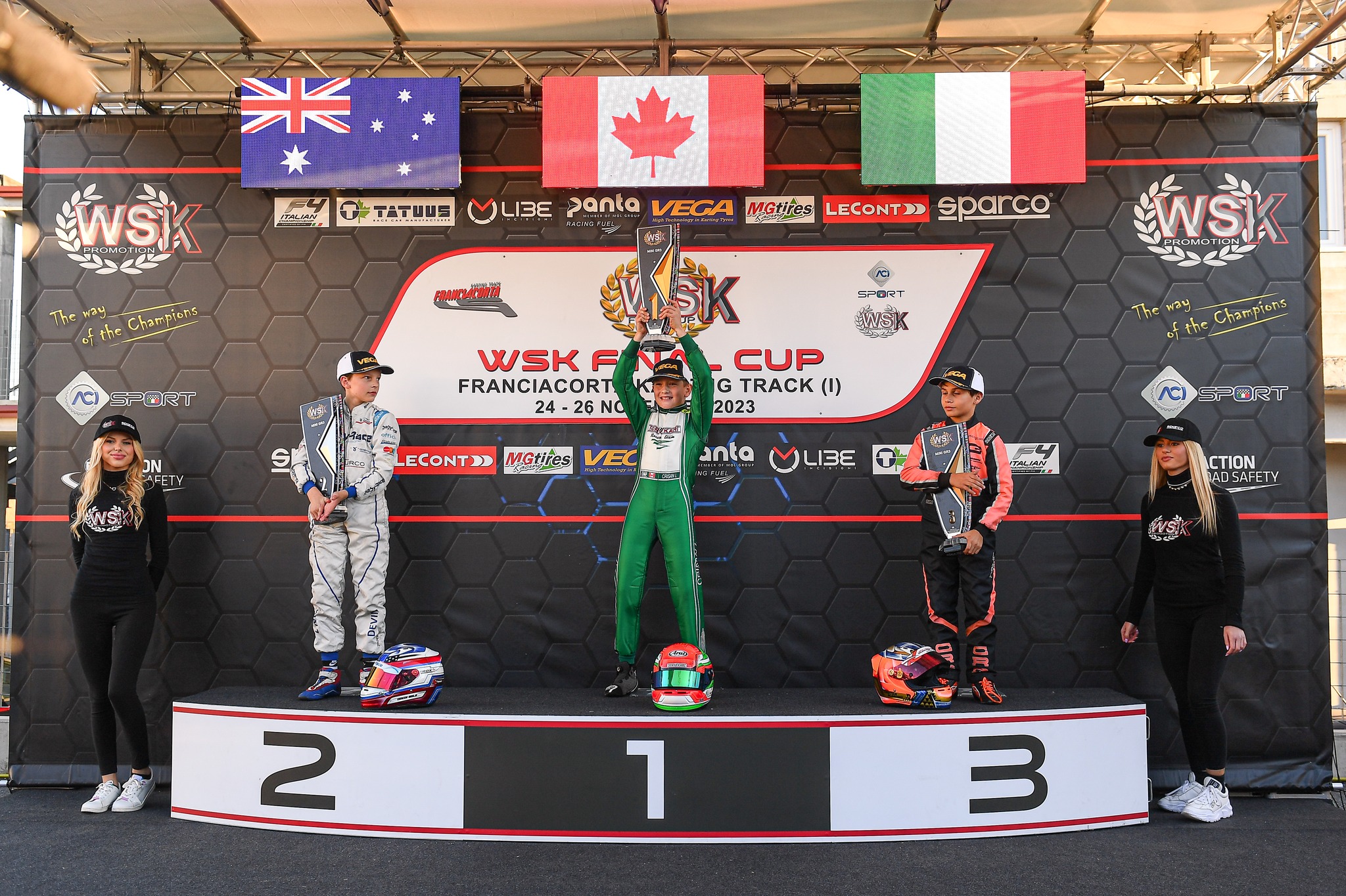 The Canadian flag was proudly displayed on the top of the podium in an international karting competition today as Ilie Tristan Crisan drove to an impressive victory in the final round of the WSK Final Cup, held at the Franciacorte Circuit in Italy.