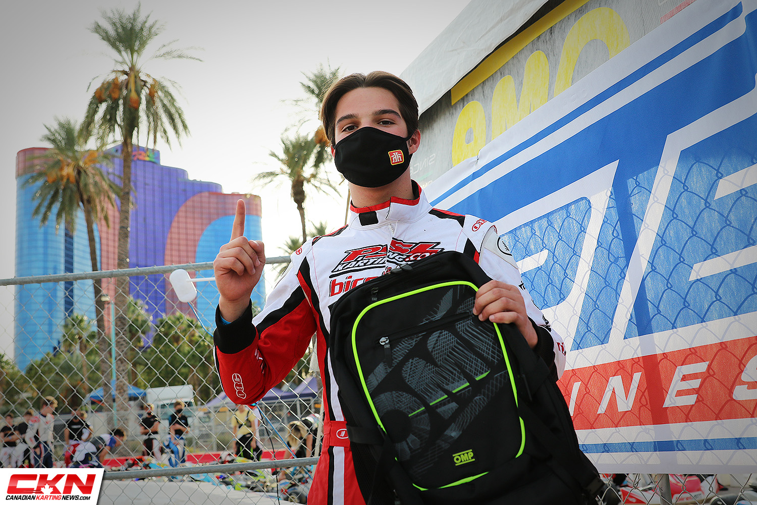In the 31-kart strong Senior ROK category it was PSL Karting’s Thomas Nepveu who outpaced the Speed Concepts Racing duo of Luca Mars and Luke Lange to score the OMP Pole Position. Jace Denmark-Gessel (RPG) was the fourth quickest driver while Team Crosslink’s Ryan Shehan had a terrific session to be classified fifth. Axel Cabrera (AKT Racing) just missed the top-five with the sixth fastest lap while Filip Niemkiewicz (Performance Kartsport) earned the seventh starting position. Patrick Woods-Toth (Prime Powerteam) will line up outside row four with Jake Drew (GFC) and Brandon Jarsocrak (Mike Doty Racing) ninth and tenth.