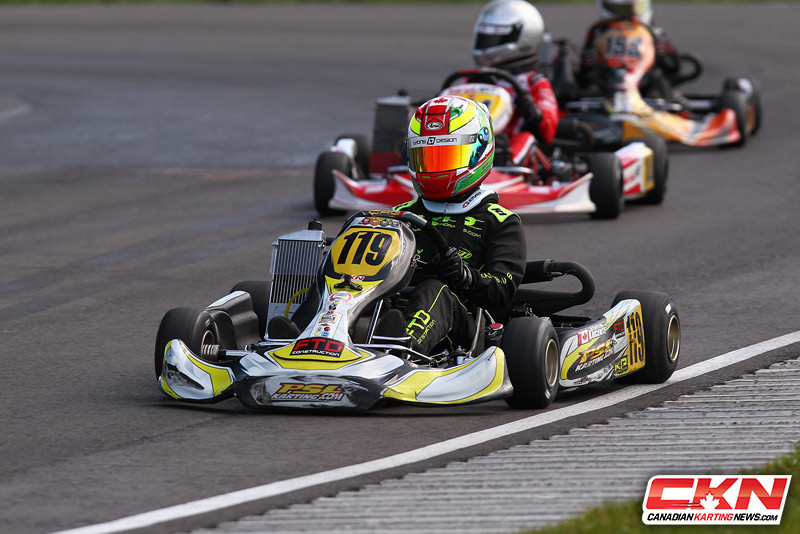 The battle for second is really tight as three drivers are within elven points of each other. Patrick Woods Toth (BCR/BirelART) currently holds second by seven points over Xavier Harris (Energy North America/Energy Kart) who has a four point lead ahead of Dillon Defonce (SH Racing/FA Kart). Woods-Toth and Harris both have wins this season while Defonce has yet to top the podium in Canada. When all is said and done whoever finishes the best out of the lot will get second in the championship.