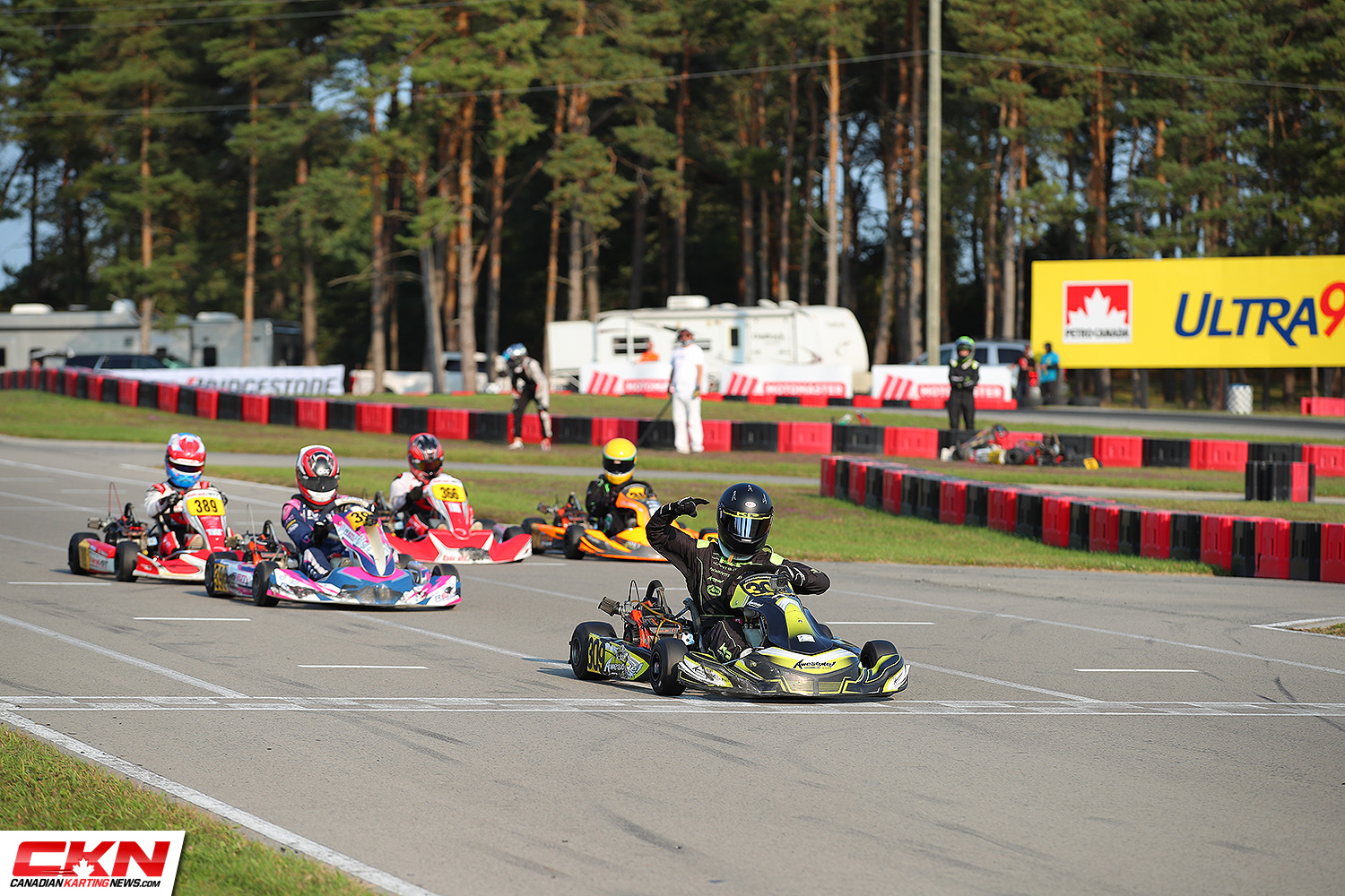 Adam Ali (Kosmic) used a second-place finish on Saturday at the Mosport Karting Centre to seal up the MotoMaster Ron Fellows Karting Championship Briggs Senior title, but that didn’t stop him from seeking a perfect podium streak in the final race of the year on Sunday.