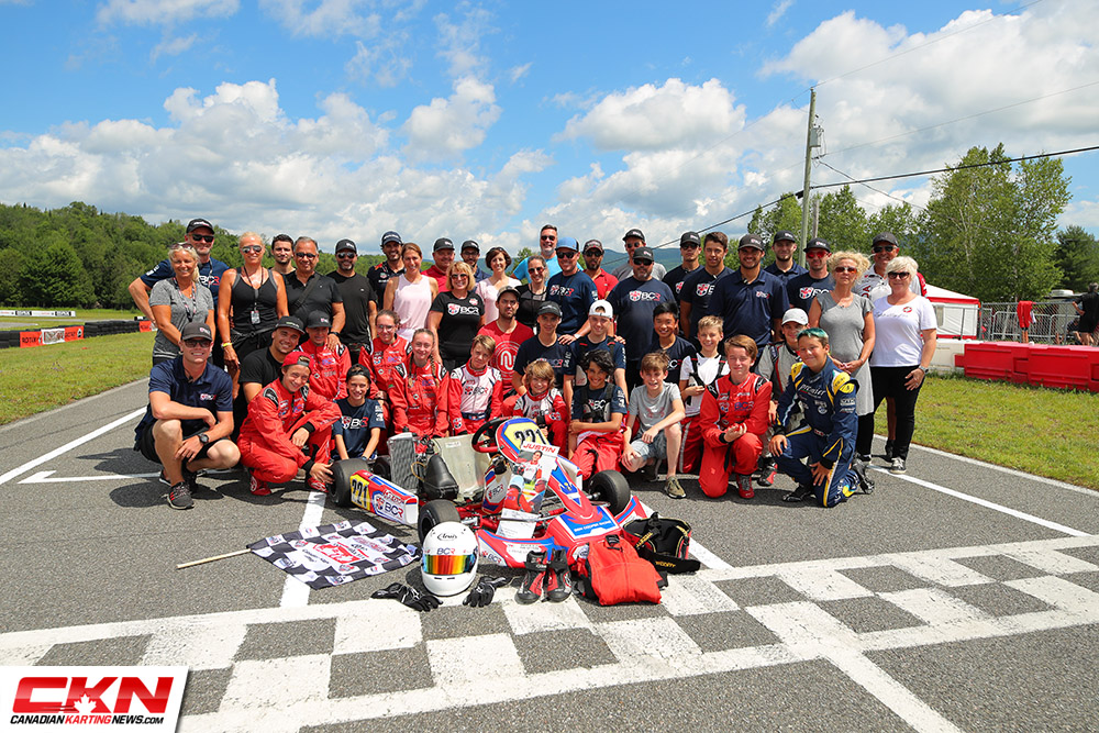 At the Canadian Open, Team BCR gathered for a photo with Justin Roy's kart and equipment.