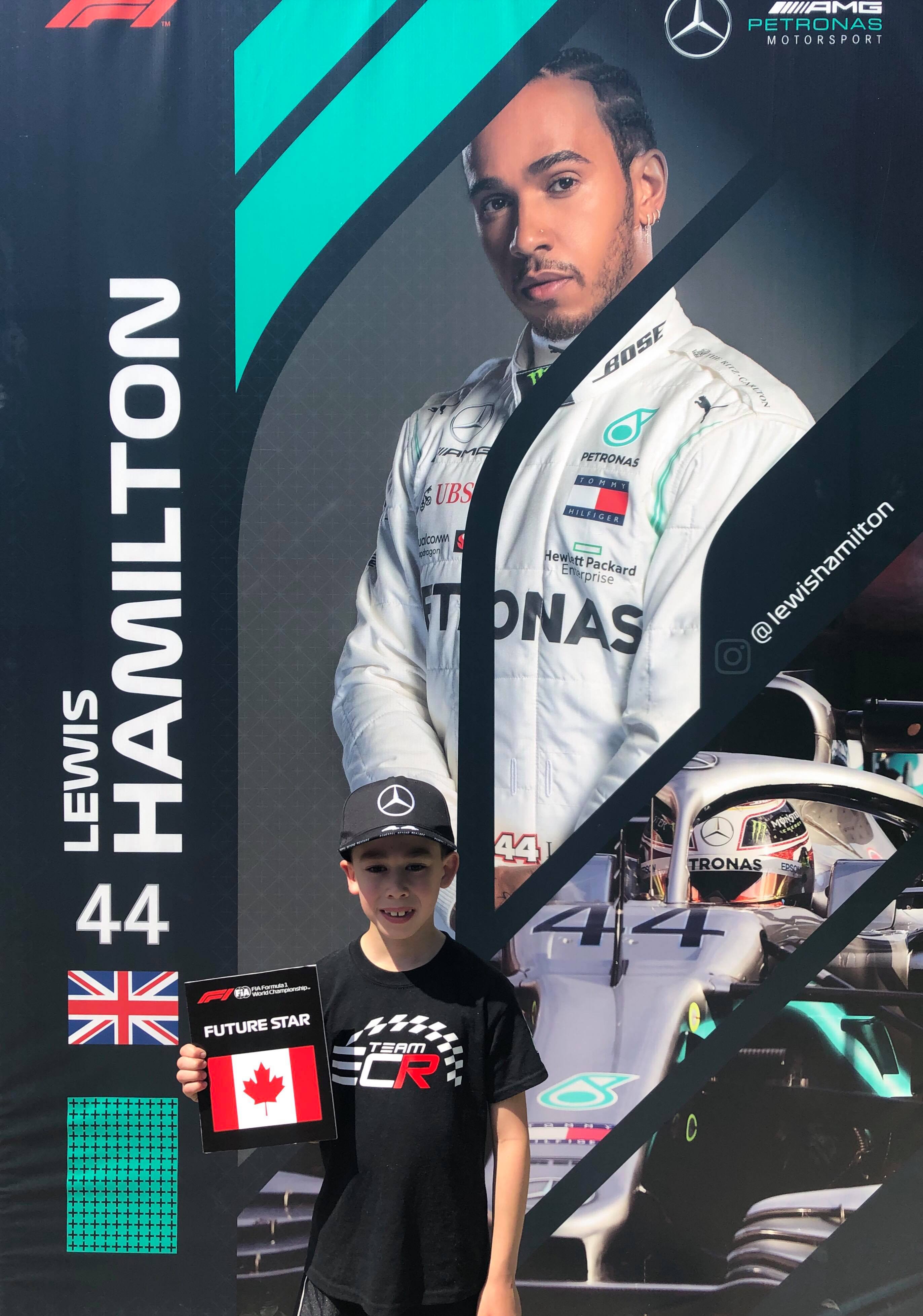 “Vincent now 7 years old started karting two years ago. Vincent had the chance last year to make the Grid Kid for the NASCAR Pintys series at the Grand Prix of Trois-Rivières for Marc-Antoine Camirand. He had loved his experience and was hoping to be chosen for F1 in Montreal in 2019! Vincent was very impressed with the infrastructure that the pits could have and the protocols that he and his friends had to respect. What luck to have been paired with Lewis Hamilton. It was a great experience that he hopes to enjoy again one day!”