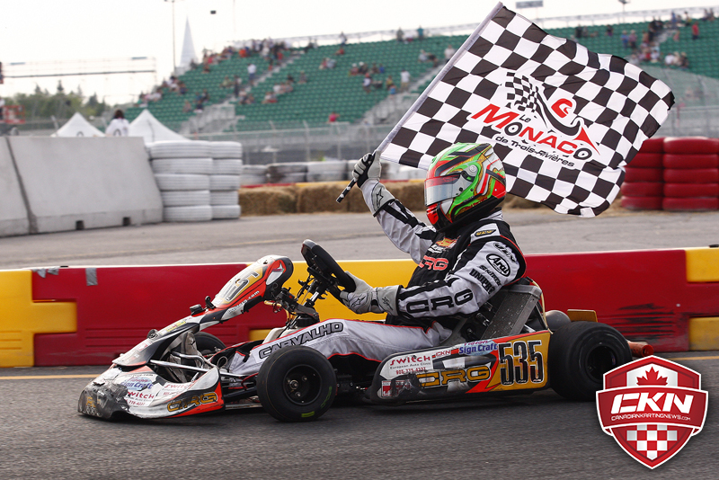 Mondou and Carvalho exchanged the lead often but a move into the hairpin with two laps to go was all Carvalho needs to score the win as Mondou wasn’t able to return the favour in the final two tours around the tricky Le Monaco circuit. Verville completed the podium as he crossed the line on the bumper of Mondou while Etienne LaSalle (KCR Karting/CRG) and Laurent Boivin (CRG) completed the top-five.