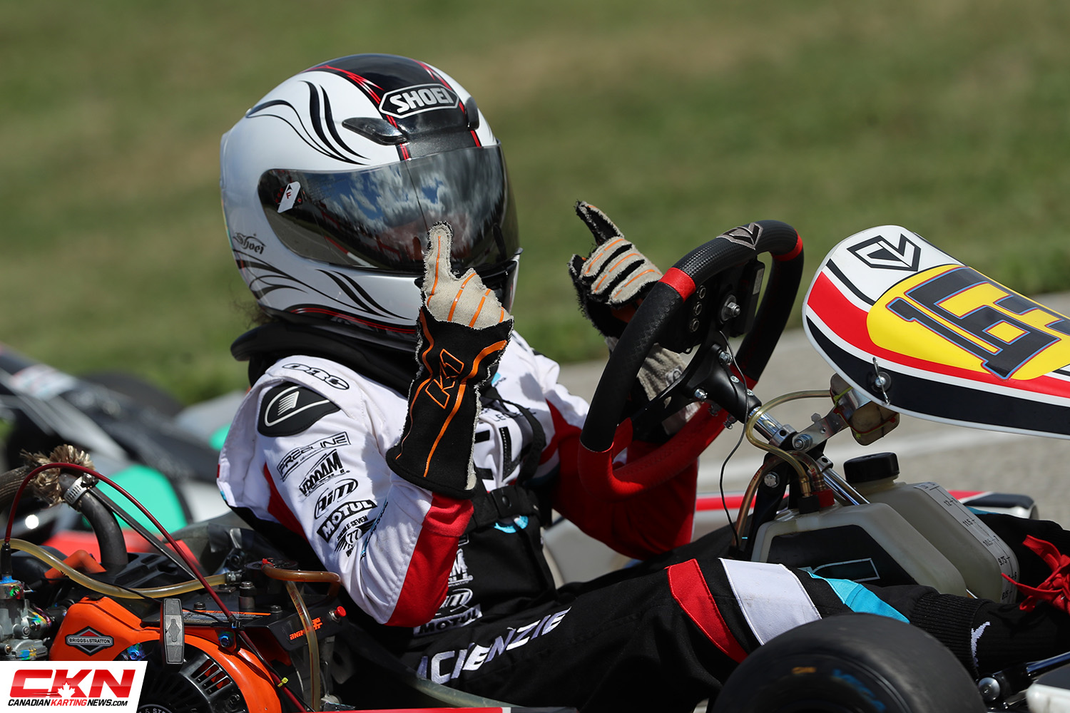 In both races at the Canadian Mini Indy, McKenzie battled every lap with Brady Clapham (Intrepid) and it always came down to the wire. Clapham did his best in both races, but it just wasn’t enough as McKenzie found a way to sneak by on the final lap of both Finals. Brandon Large (BirelART) finished third in both races ahead of Anthony Martella (CL Kart).