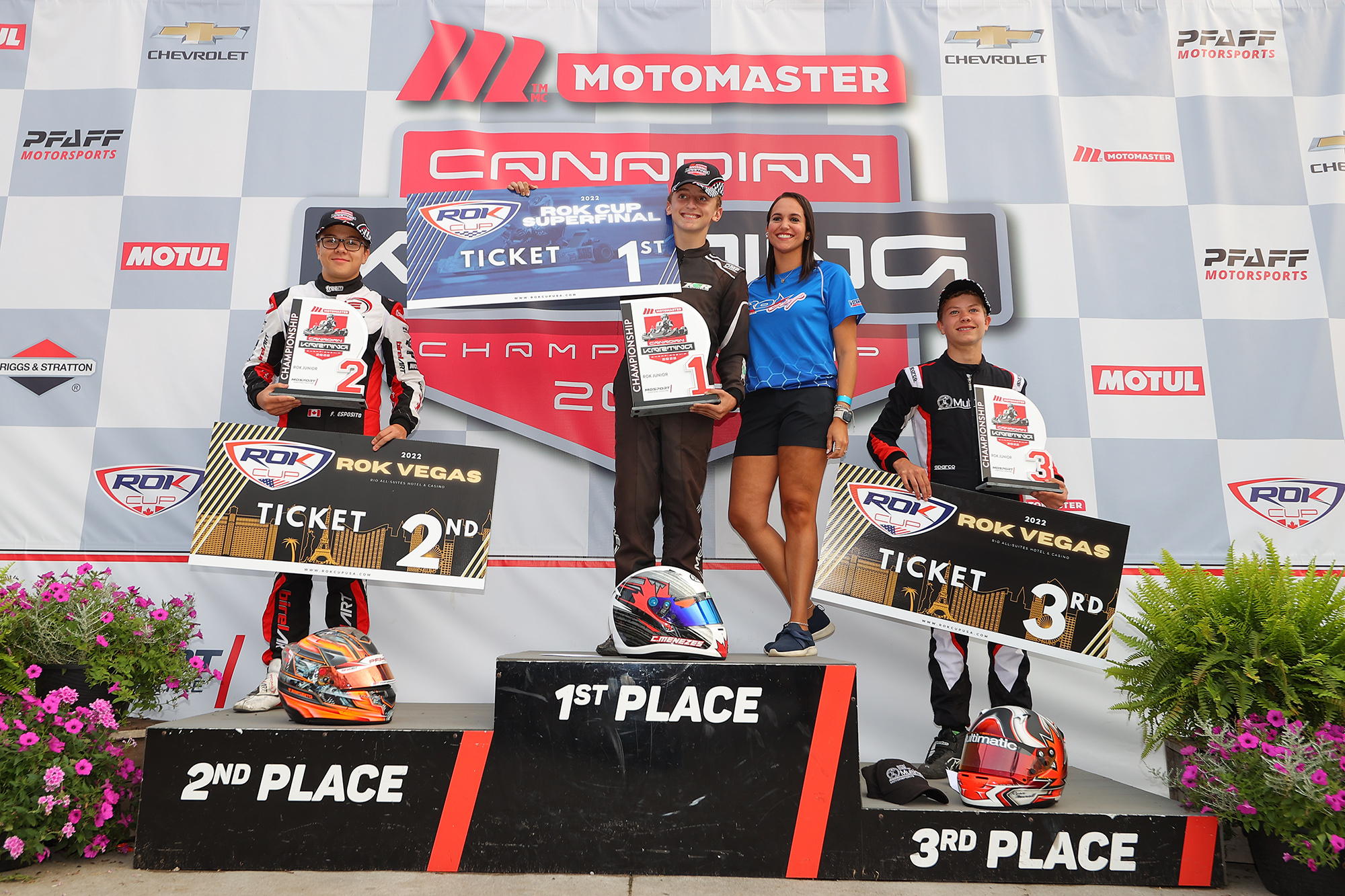 Rounding the final corner and taking his first major karting victory, Menezes secured himself a ticket to the Rok Cup SuperFinal as the Canadian National Champion.