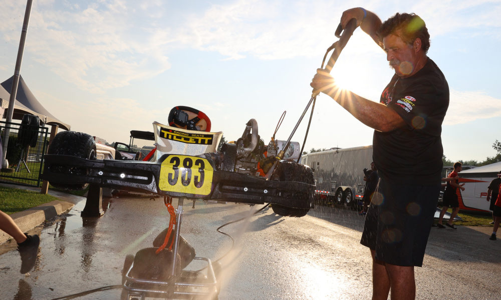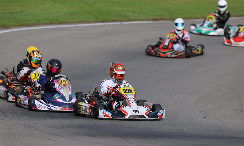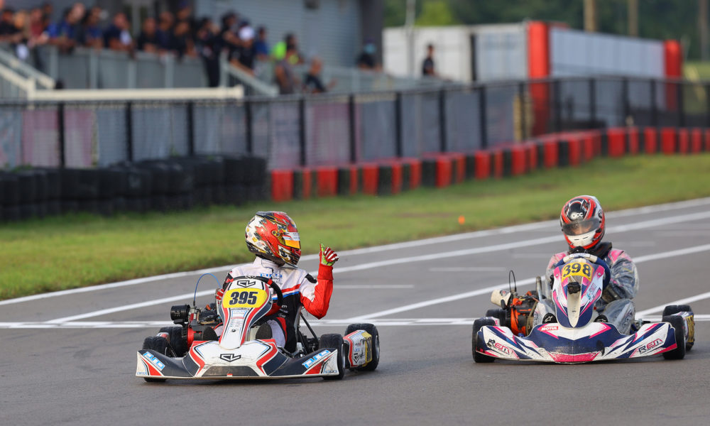 In the race for third, there were many contenders hoping for a podium spot. Adam Ali and Flintoff came together in the bowl, ending Ali’s race on the spot and Flintoff’s a lap later with her rear bumper dislodged. Steven Navratil (Awesome Kart) almost had the spot as well, but he fell down the order on the final lap. Maddox Heacock (Awesome Kart) quietly worked through the pack to score the final step of the podium ahead of Alex Murphy (BirelART) and Ploder.