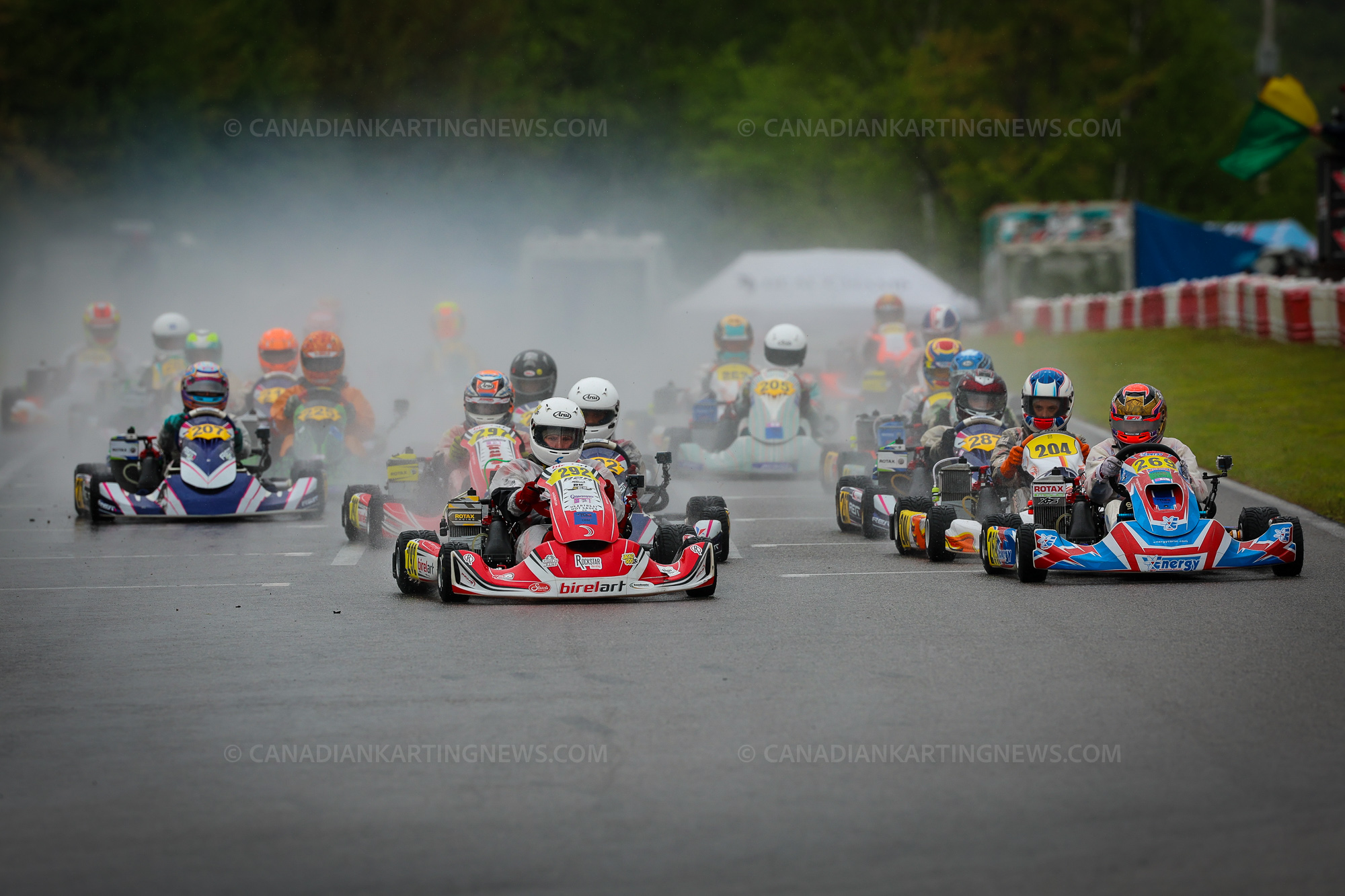 Alexis Baillargeon (HM Propela/Kart Republic) topped the tricky qualifying session that had a light drizzle fall almost immediately after the drivers left the grid. Antoine Bazinet (Premier/TonyKart) posted the second-best time, followed by Jeremy St-Cyr (PSL/BirelART) and Olivier Chasse (HM Propela/Kart Republic), as only three drivers posted a lap time within a second of Baillargeon.