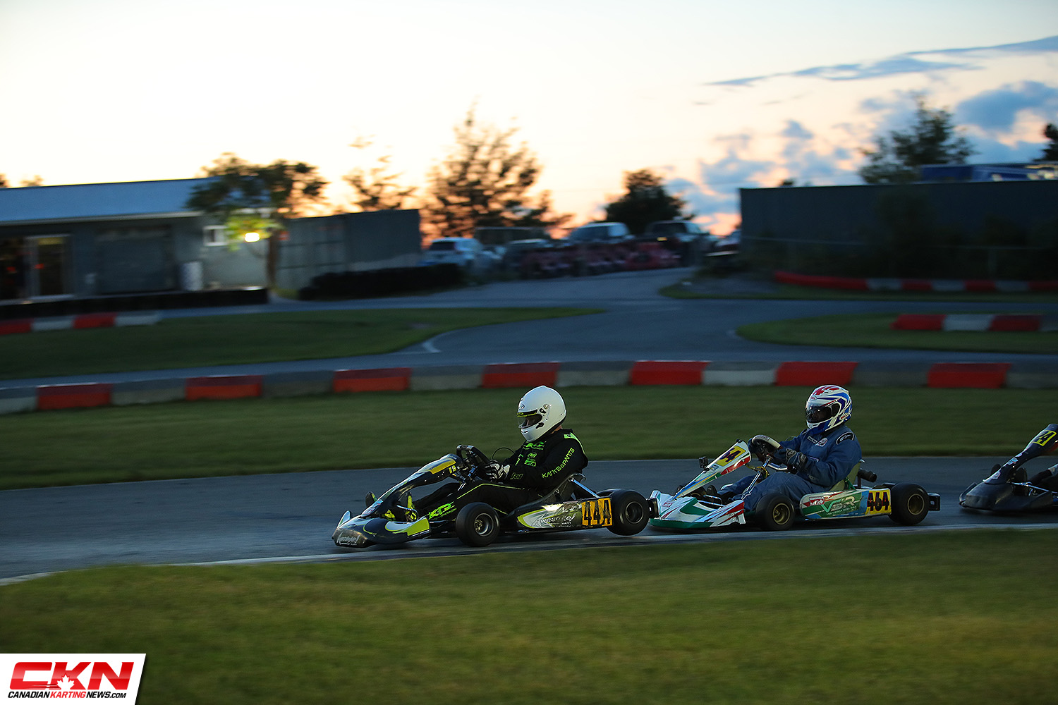 Just as he did at the beginning of the MRFKC season, David Anderson (Karts & Parts/Awesome) was the only Briggs Masters driver to win at Goodwood Kartways. He swept the event back in May and swept the night in September, dominating the Final race and fending off Darren Kearnon (VSR/TonyKart) and David Miller (FA Kart) on the final laps. Kearnon would work by Miller on the final lap to take second while Stephen Goebel (Karts & Parts/Awesome Kart) wound up third after penalties were given to Miller, for regaining his spot after the formation line, and Yanko, for contact with another driver.