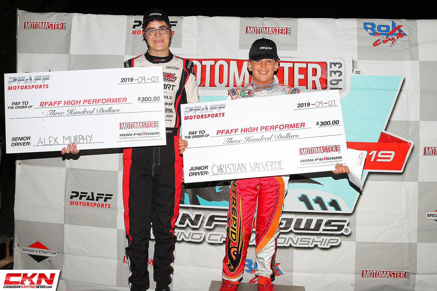 Taking home the final two awards of the evening, Alex Murphy was awarded the Pfaff Motorsports Senior High Performer for his win in Briggs Senior, while Christian Valverde was awarded the Pfaff Motorsprots Junior High Performer after earning a second place result in the Briggs Junior Lite Final.