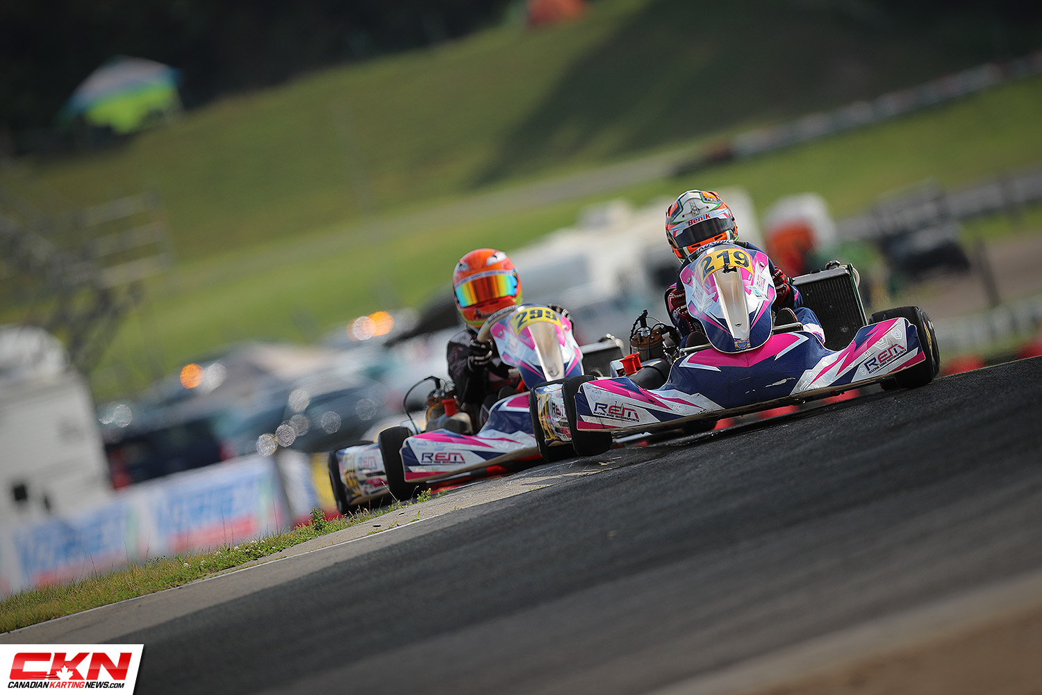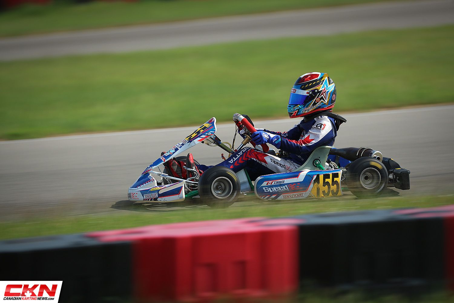 Last years duo that fought tooth and nail for the Mini Rok championship are at it again this summer and they have some company with them. Frankie Esposito (Prime/BirelART) and Ayden Ingratta (AI/TonyKart) continued the rivalry when the series got to Mosport for the first of two races this summer and they had Cole Newton (Energy Corse/Energy Kart) and Ashton Henckel (Prime/BirelART) keeping them honest.