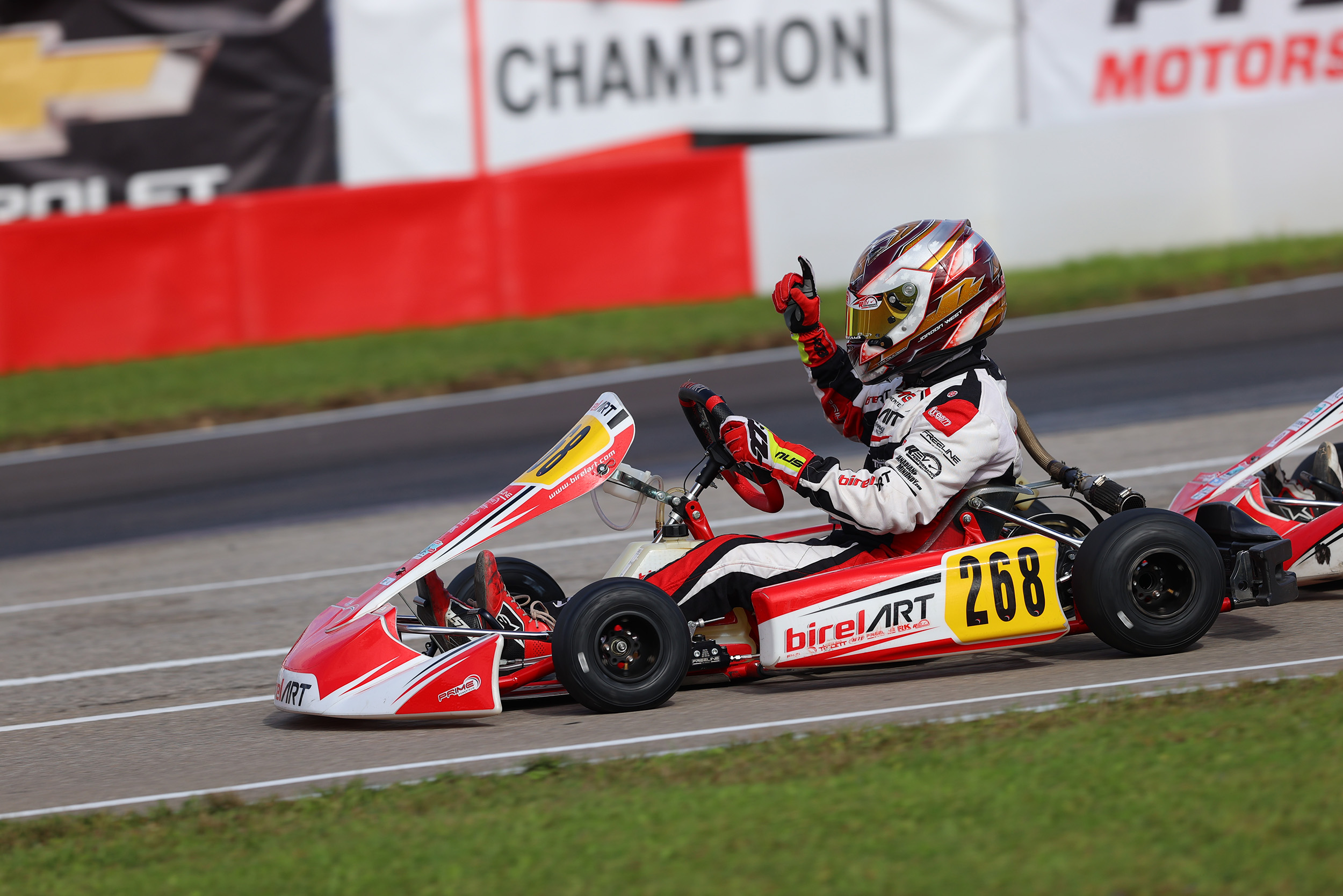 Baxter was held off the podium for only the third time this season with a fourth-place finish, but it was more than enough to confirm him as the champion of the Briggs Junior category, his second title of the day after scoring the Rok Junior championship as well. West ended up second overall with Hofrichter third.