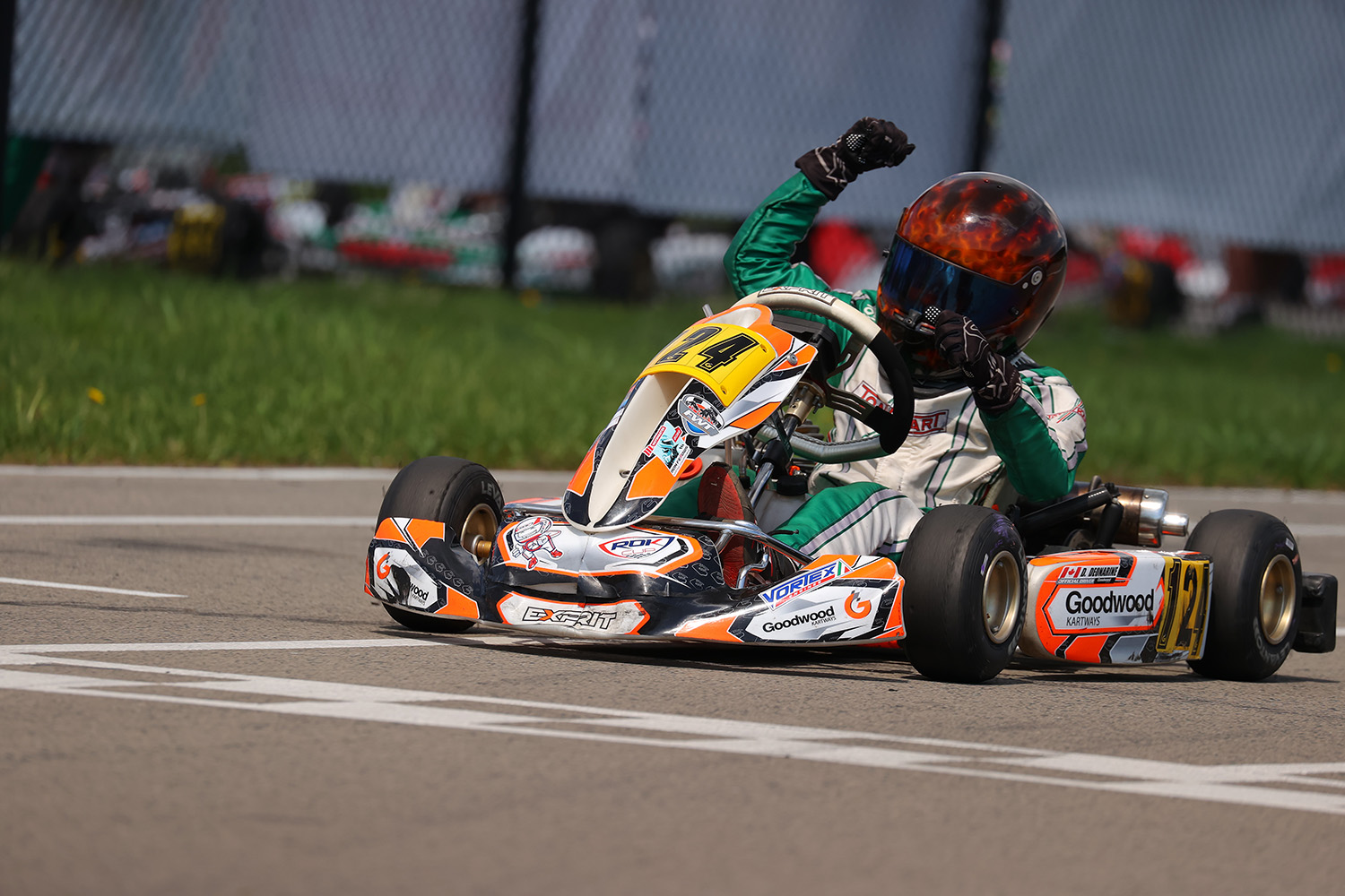 Making a late-race charge, Deonarine (VSR/TonyKart) was able to move into fourth place while Jackson Morley (Prime/BirelART) and Nicholas Lorusso (KGR/Kosmic) slipped by Roach with two laps to go in the race to finish fifth and sixth.