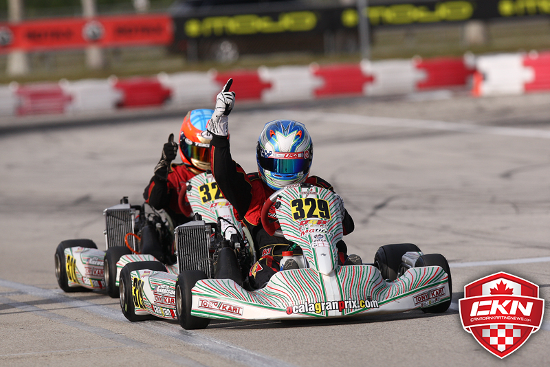 Joining Kirkwood on the podium on Saturday was Ed Brand (CRG USA/CRG), who marked his return to the Italian brand, and Dan Roeper (BN Racing/BirelART) who had a remarkable drive from deep in the starting grid to the podium. Askew was forced into a DNF after his rear bumper was knocked into his tire after contact with DeMelo as well as Kirkwood. Rookie Senior drivers filled the following four positions as Garrison, Canadian Gianfranco Mazzaferro (Ferrolati Corse/TonyKart), Cedrik Lupien (SH Racing/FA Kart) and Christian Munoz (V Motorsport/TonyKart) all enjoyed a solid start to the Senior Rotax career.