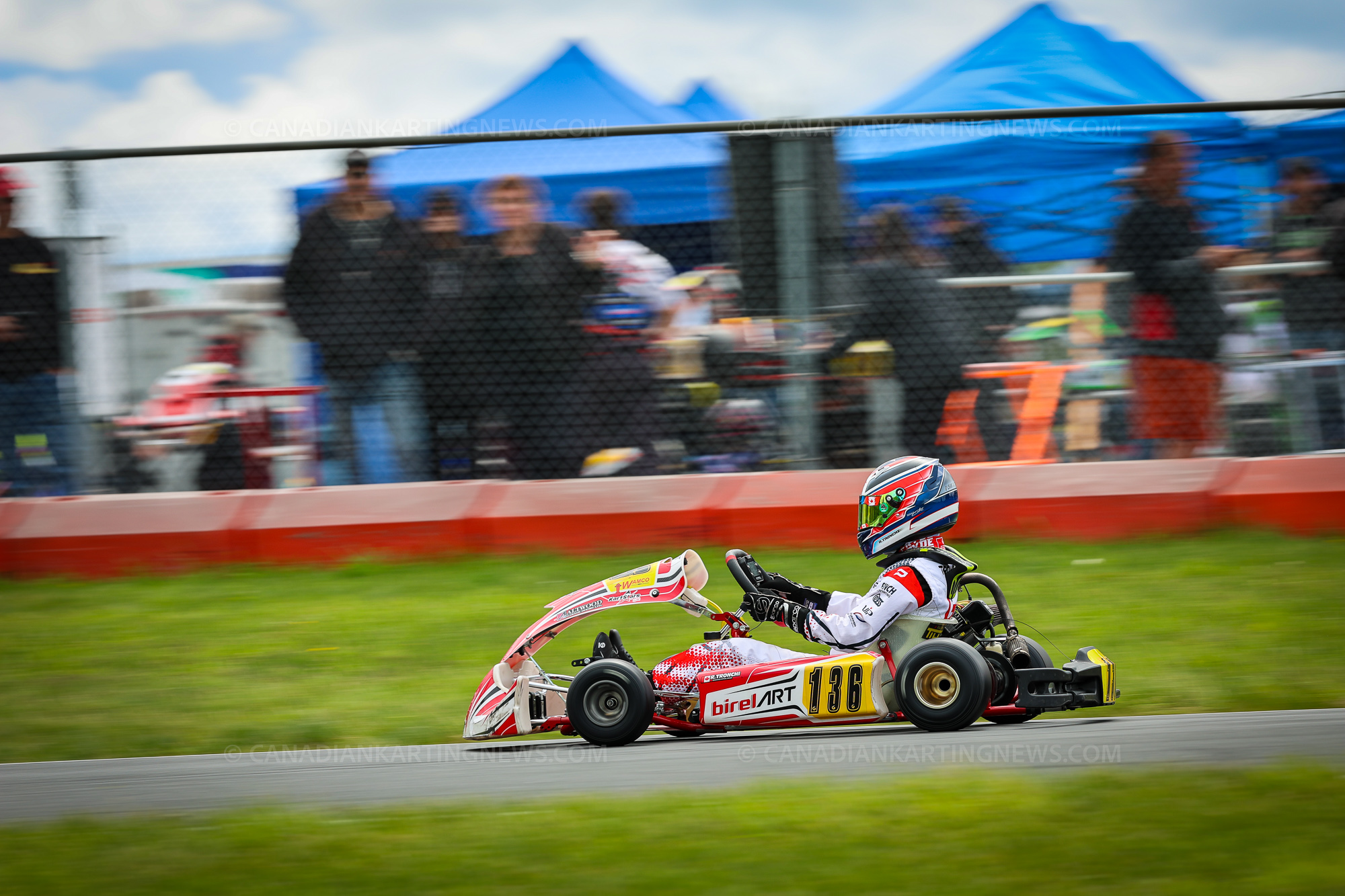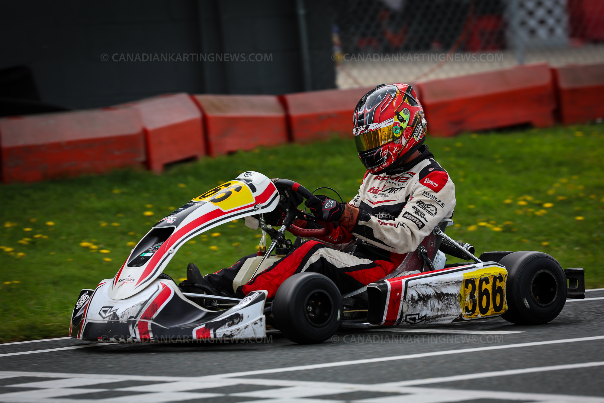In a tight battle, Aiden Kishun (Exprit) was the next to cross the finish line, but he failed to leave racing room and earned himself a one-position penalty, elevating Hayden Lawson (Parolin), who travelled from Ohio to race, to third place. Kishun was ranked fourth, with Bryson Bound (CL Kart) completing the podium in fifth. Notably, Potter advanced all the way to ninth at the finish line as the hard charger.