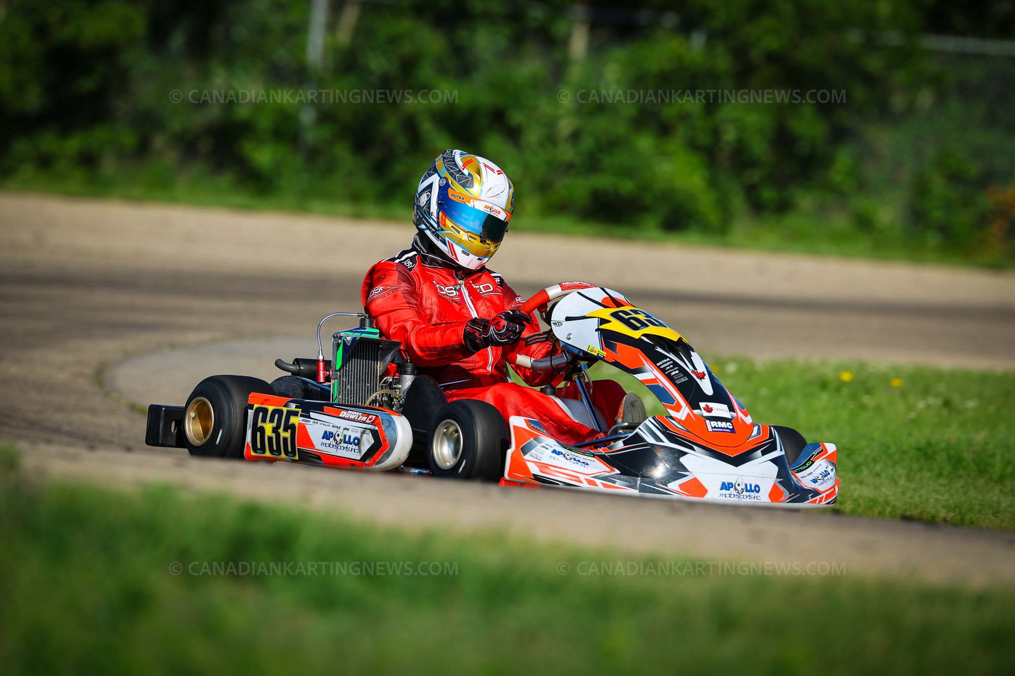 Early in the race weekend, American Billy Cleavelin (CB Motorsport/OTK) was the closest challenger to Dowler, getting the advantage on a few of the race starts, but Dowler always fought back to get the lead and eventually pull away. Cleavelin finished P2 in Friday’s Final with British Columbia’s Andy Jaffray (RaceLab VI/TB Kart) taking P3.