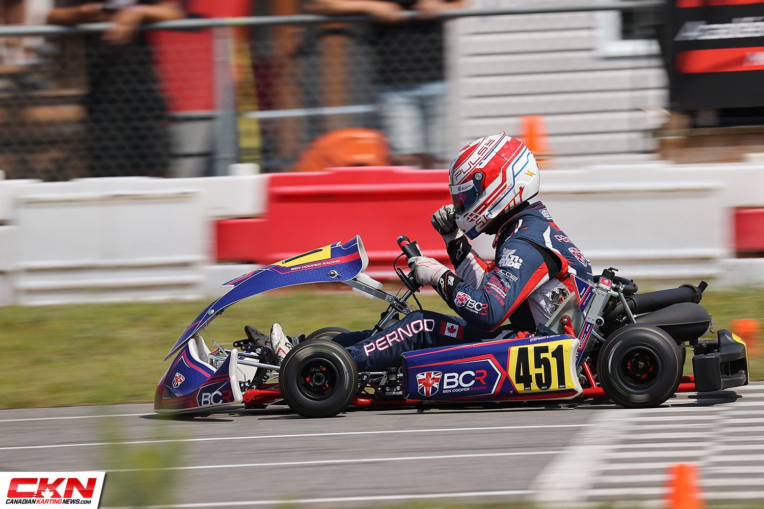 All weekend long it was a tight battle at the front where Christophe Rizk (ETI Racing/CL Kart) and Olivier Bedard scored the heat race wins but Pernod (BCR/BirelART) got ahead and won the PreFinal, setting up a showdown in the Final.