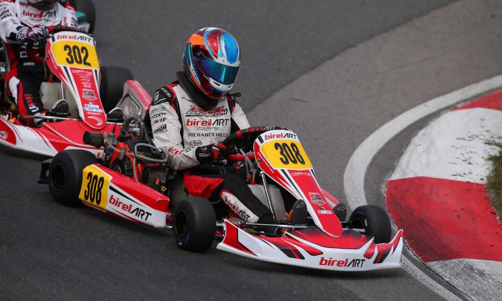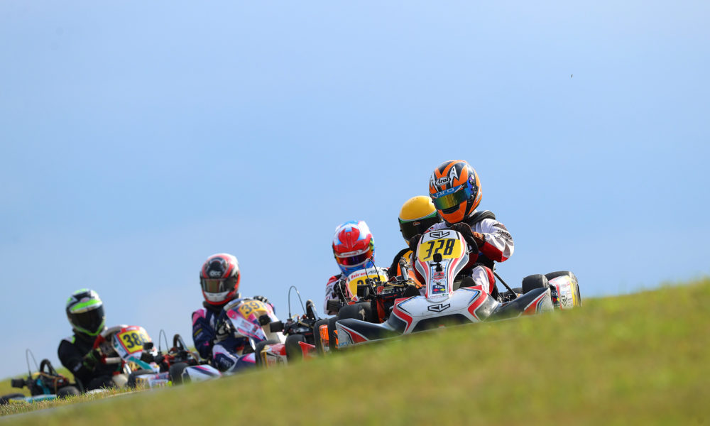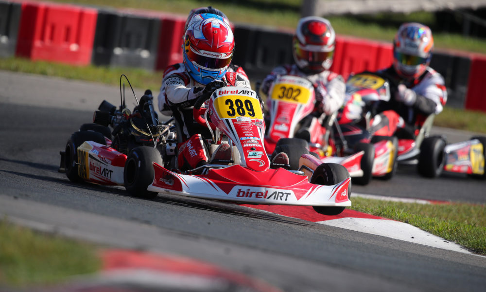 With the opening lap dust settling, Logan Ploder (CL Kart) found himself in the lead ahead of Maddox Heacock (Awesome Kart), Jordan Prior (BirelART) and Adam Ali (Kosmic) while pole-sitter Jon Treadwell (BirelART) fell back to eighth on the opening lap.