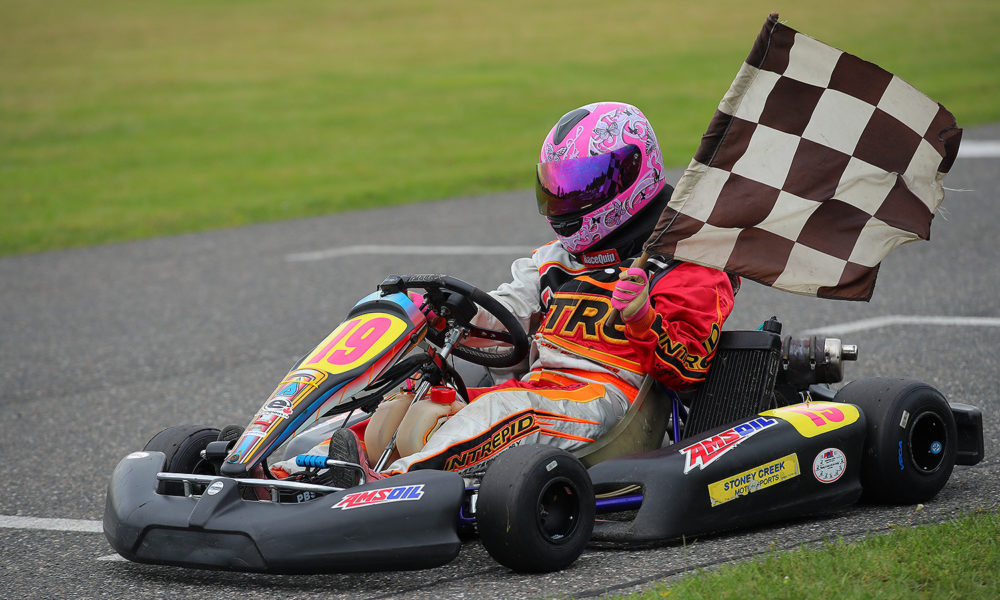 Christian Papp was able to drive home the Novice Final win over Ryan Reia and Adam Saldanha. Junior Lite featured a great display of driving by Ayden Ingratta, the 2019 Canadian Mini Rok Champion, followed by Tyler Desrosier and Daniel Heath. Junior Heavy saw Dallas Brown get the race win over Ryan Brady and Cameron Glasgow.