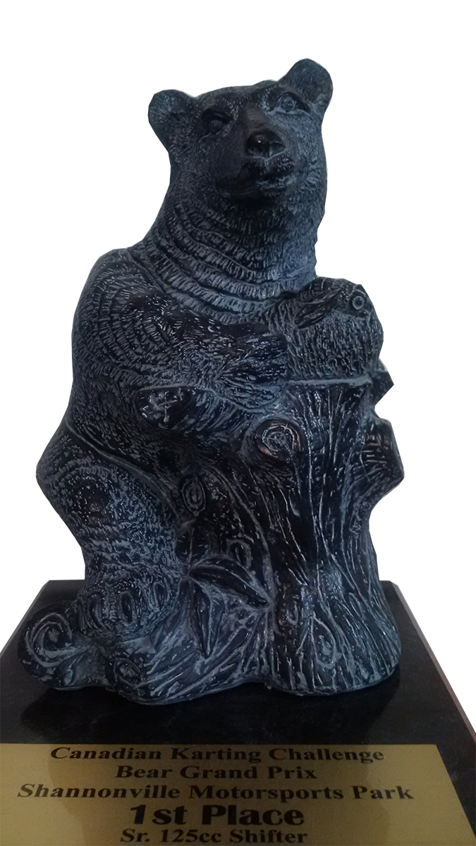 “Shannonville always is a family-friendly race and one of the events on our calendar that produces great on track battles,” explains Innisfil’s Tony Launi. “The long front straight provides for trains of karts, nose to tail, in a high speed game of chess. With points and awards on the line, all competitors are actively seeking to hoist the elusive and prestigious ‘Bear’ trophy.”