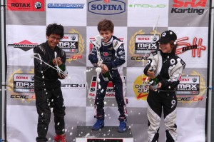 In Micro Max, PSL Karting/CRG driver Matthew Latifi continued with his impressive debut in the ECKC. Another pole run in qualifying led to two more dominating performances in the prefinal and final. Scoring max points with his perfect weekend, Latifi emerged as not only the Micro Max points leader, but the driver to beat over the remaining four rounds. Despite Latifi’s dominance, the rest of the Micro Max surely didn’t disappoint, as they put on a great show with thrilling passes lap after lap. Matthew Barry and Xavier Harris again completed the podium for a great start to the 2012 ECKC season.