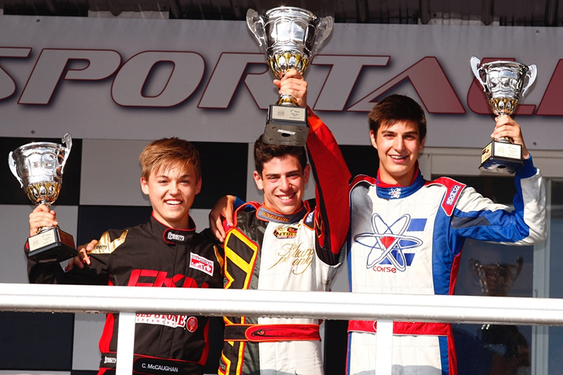 Proof of the point runs from Christopher Chanko to Zachary Claman DeMelo. A graduate of the Goodwood Kartways arrive-and-drive program, Chanko raced in Micro-Max last year in his first year with the team and this season races Mini-Max with Goodwood/Intrepid. He qualified on the front row Saturday, but was knocked down the order in the PreFinal, finishing tenth. He then rebounded in the Final, crossing fourth and setting the fastest lap of the race in the process. Sunday he qualified fourth to start the day, moved up to second in the PreFinal and then held position there in the Final to earn his first podium of the ECKC season, once again setting the fastest lap in the field.