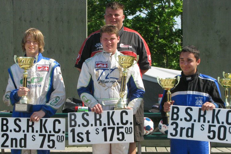 GP drivers swept the Senior Rotax podium, with Michael Glaze in first, Chad Campbell second and Stefan Semeraro third (Photo: Courtesy of Innisfil Kart Club)