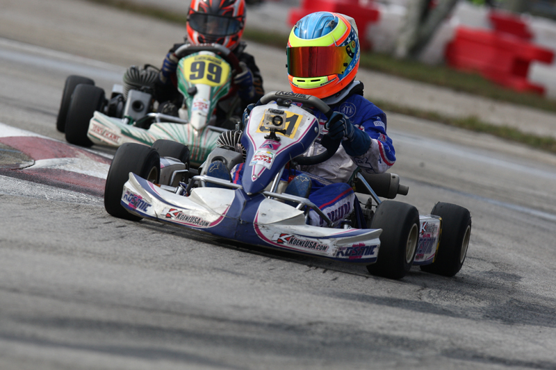 Nicholas would be the first of the DRC pilots to complete his day on Saturday and would do so in the second position. After qualifying his Team Koene USA prepared Tony Kart on the outside of the front row, the younger of the d’Orlando brothers would remain consistent throughout the day. After a slight mid-race mishap that would see him fall down the running order and then able take advantage of some other drivers’ misfortunes, Nicholas would manage to claim a fourth place result in the prefinal.