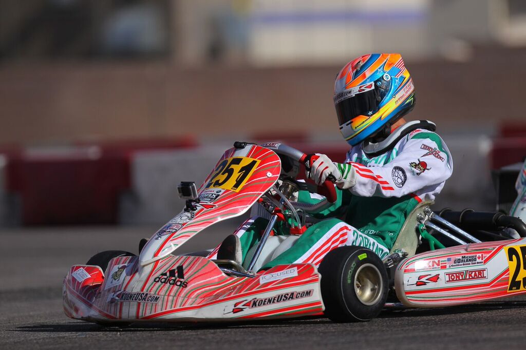 Michael kicked off his race weekend on Thursday by qualifying his No. 251 KoeneUSA prepared Tony/Kart in 12th position, in a tight field with some of the top drivers in North America, and against strong desert winds. Bad luck would come early as he got collected in heat #1 in an accident between two other karts, although he recovered back up to 15th slot from the tail of the field. Friday’s racing would test Michael’s perseverance as he had electrical problems in the engine in heat #2, which gave him the opportunity to show some of his talent to maintain 16th by gaining back positions throughout the technical infield that he’d lost from lack of horse power on the straight away. A solid performance for 8th in heat #3 was what he’d hoped was the end of the unlucky streak but then unfortunately, another incident of unavoidable contact early in heat #4 was another showing of his never-give-up attitude as he recovered from the tail of the field once again to make his way back up to 11th.