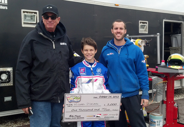 With the World Karting Association (WKA) Manufacturer’s Cup season coming to a close just over a month ago, it was back to the New Castle Motorsports Park facility for an inaugural event. This time, taking part in the Yamaha Junior Sportsman money race held over the same weekend as the Robopong 200 – Dan Wheldon Memorial Cup, dual citizen Michael d’Orlando would walk the paddock with some of the country’s elite karting drivers as well as several from the Mazda Road to Indy program and IZOD IndyCar Series regulars as he battled for a hefty paycheck.